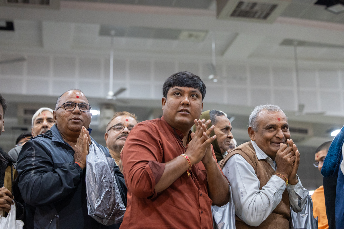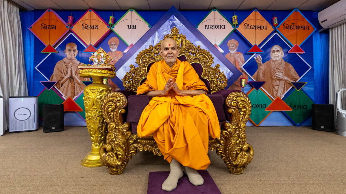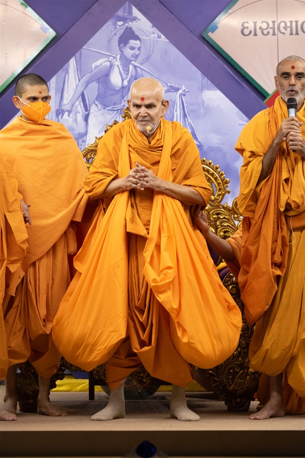 Swamishri greets all with folded hands