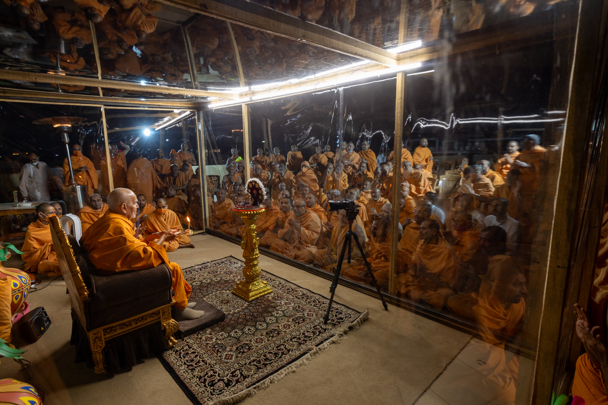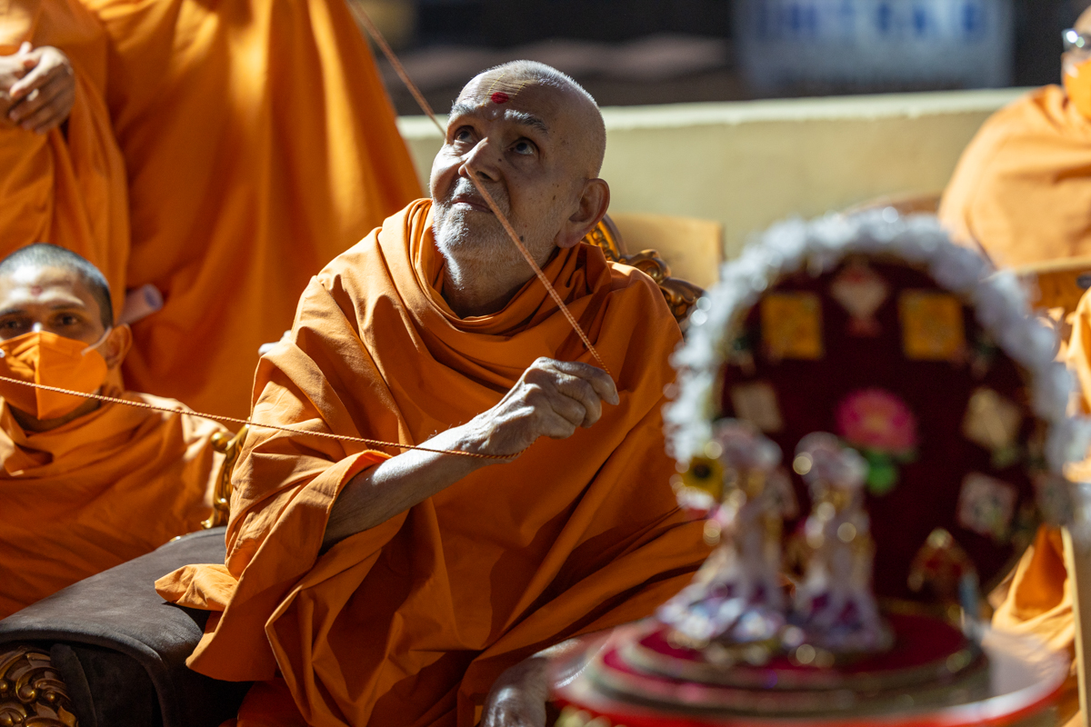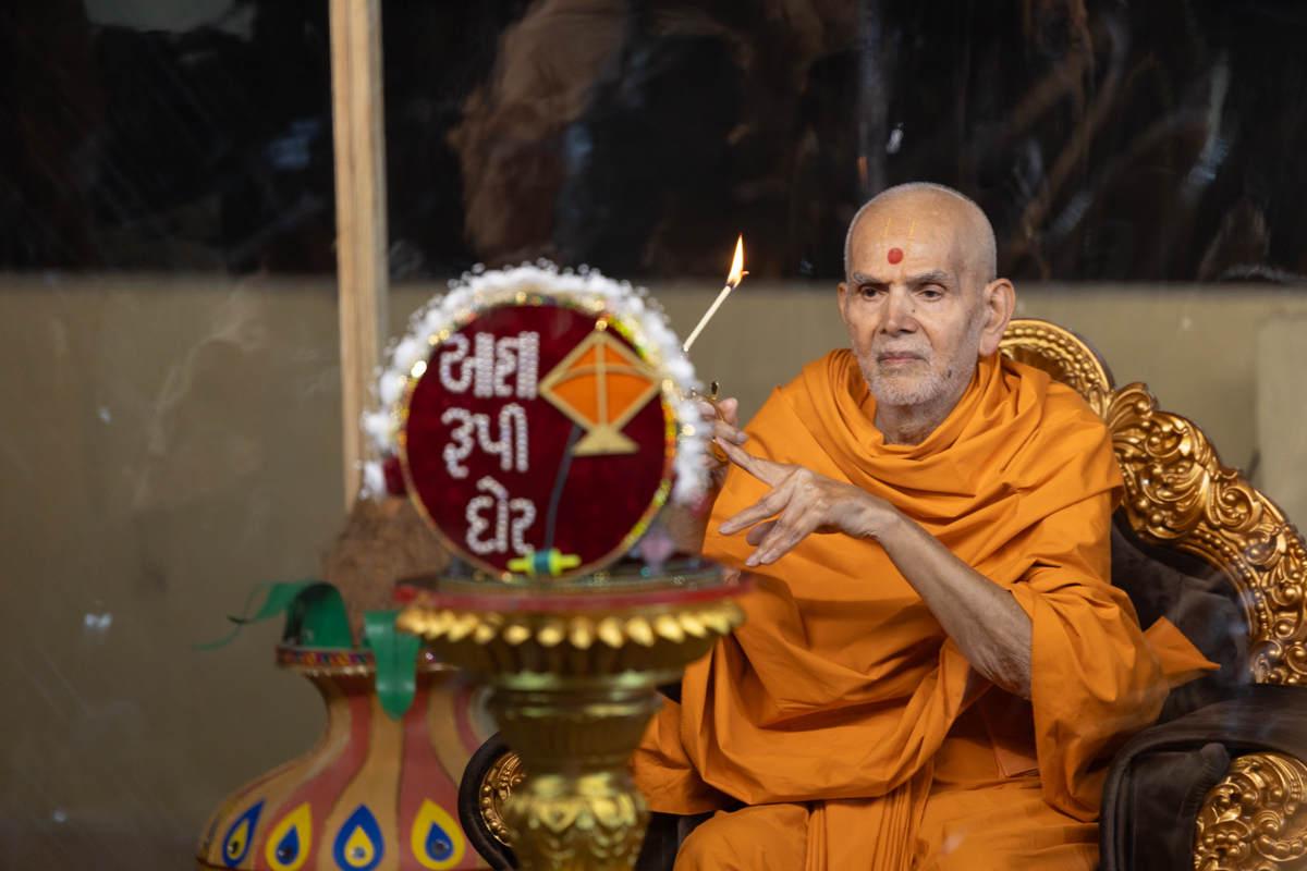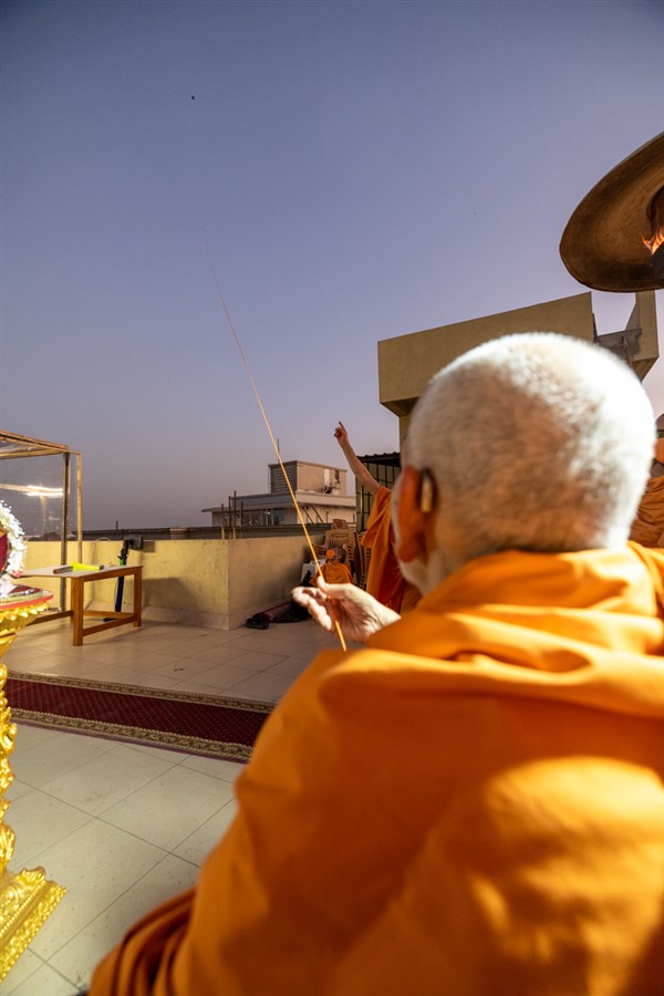Swamishri performs the morning arti