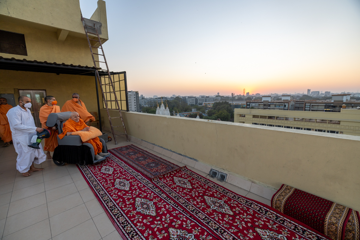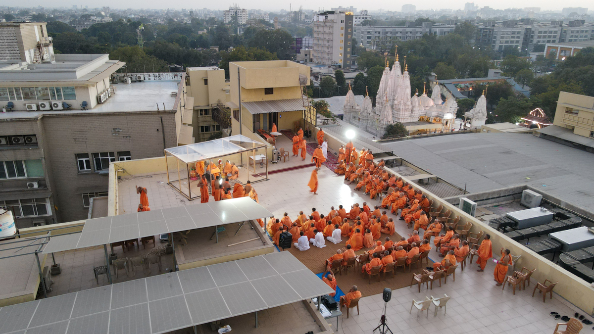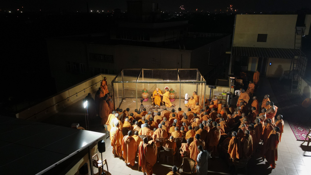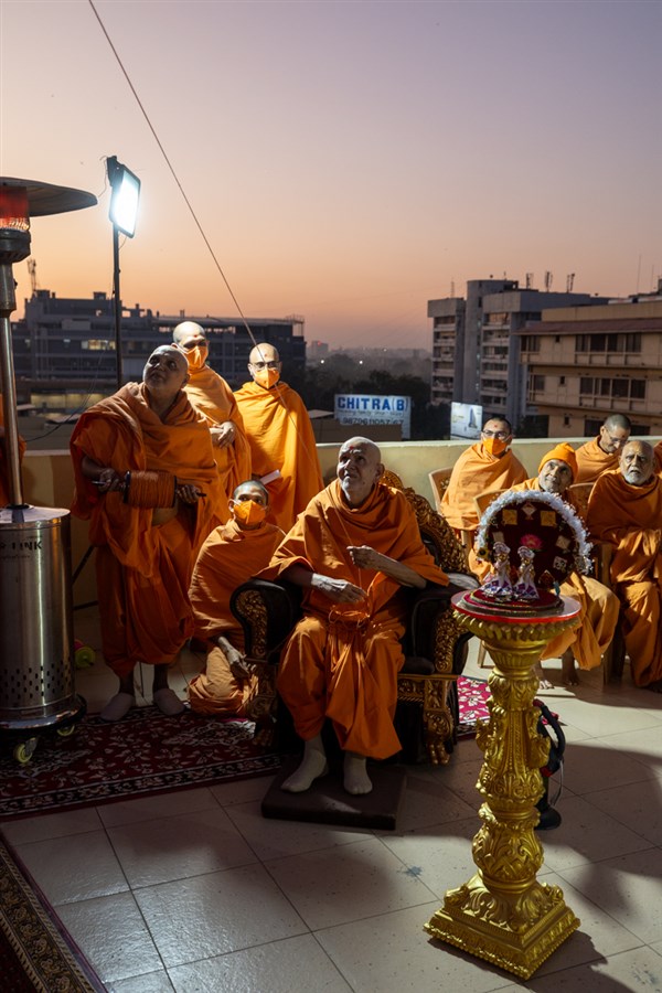Swamishri performs the morning arti