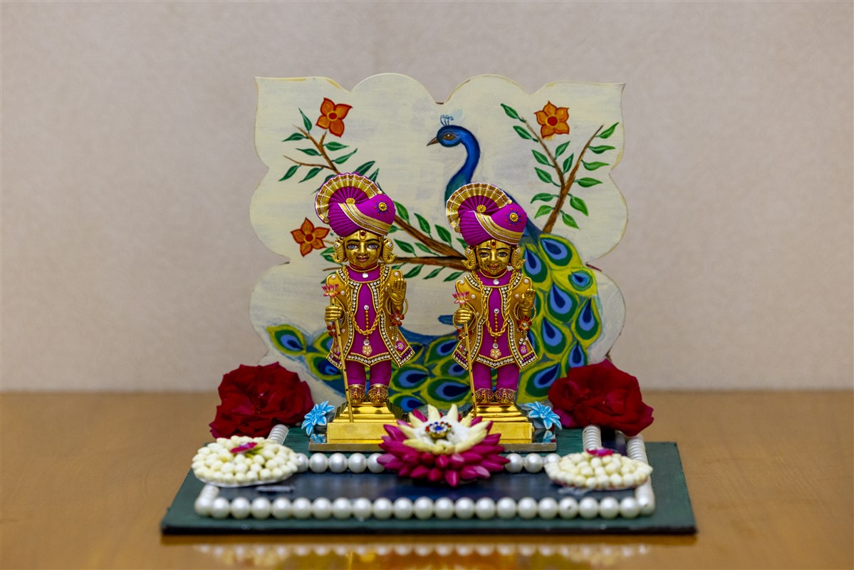 Swamishri engrossed in darshan of Bhagwan Swaminarayan and Aksharbrahma Gunatitanand Swami