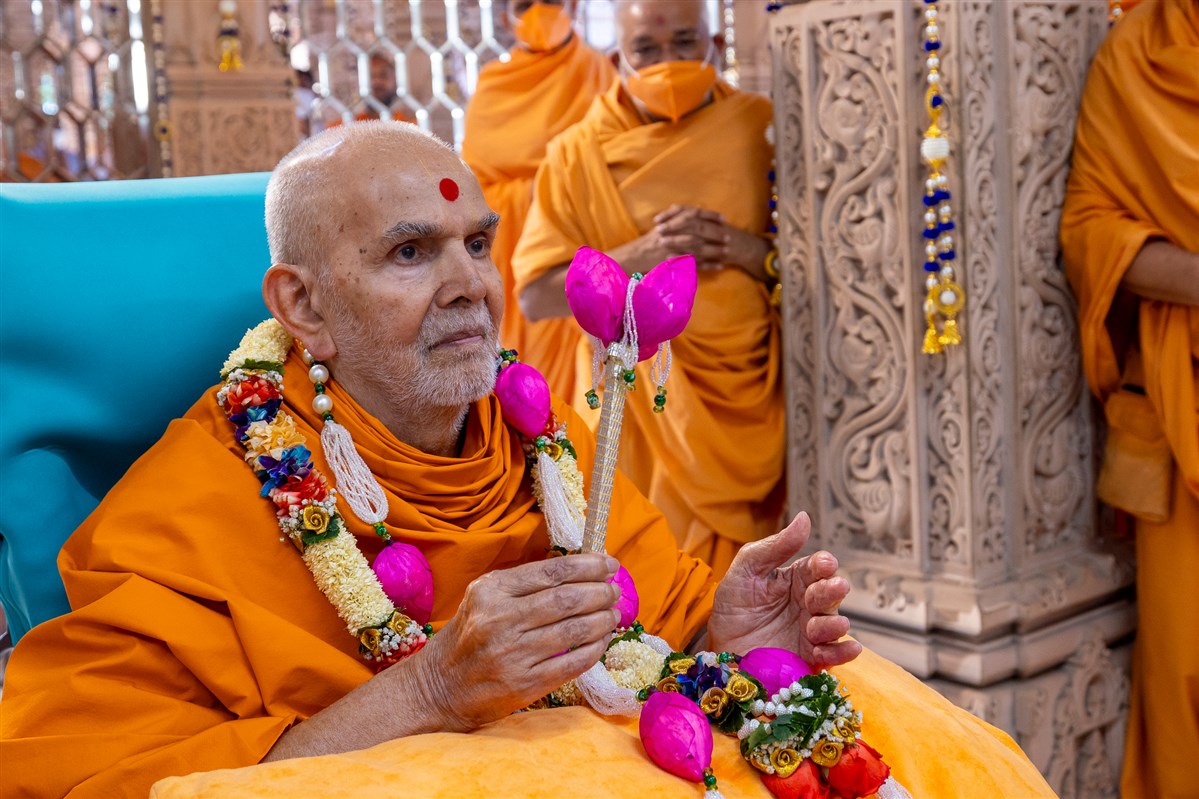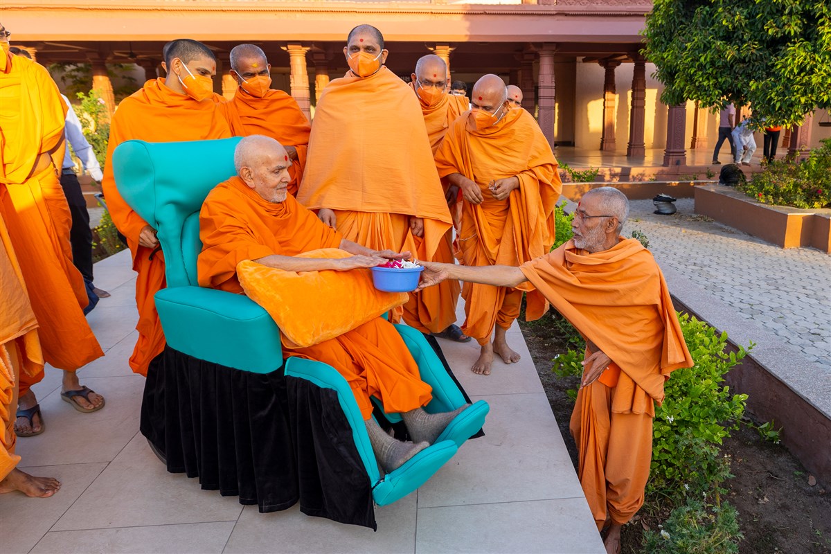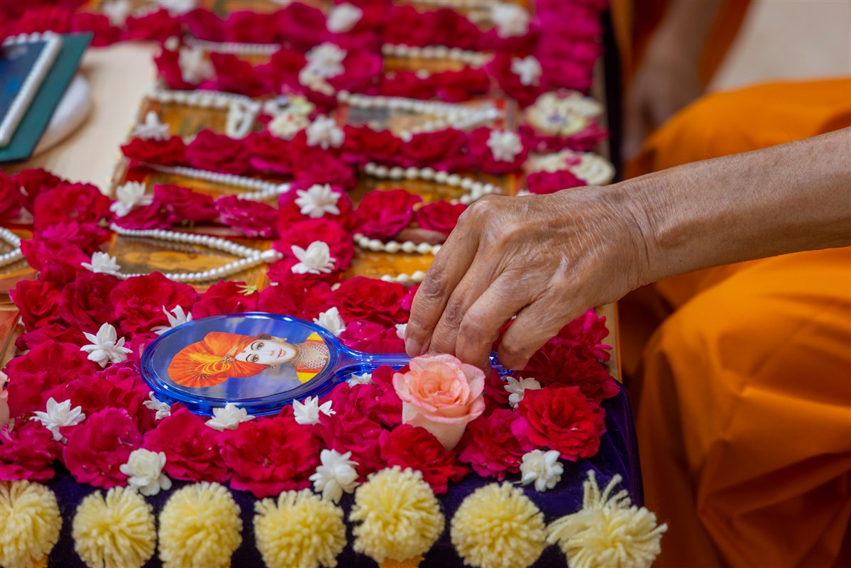 Swamishri sanctifies flowers