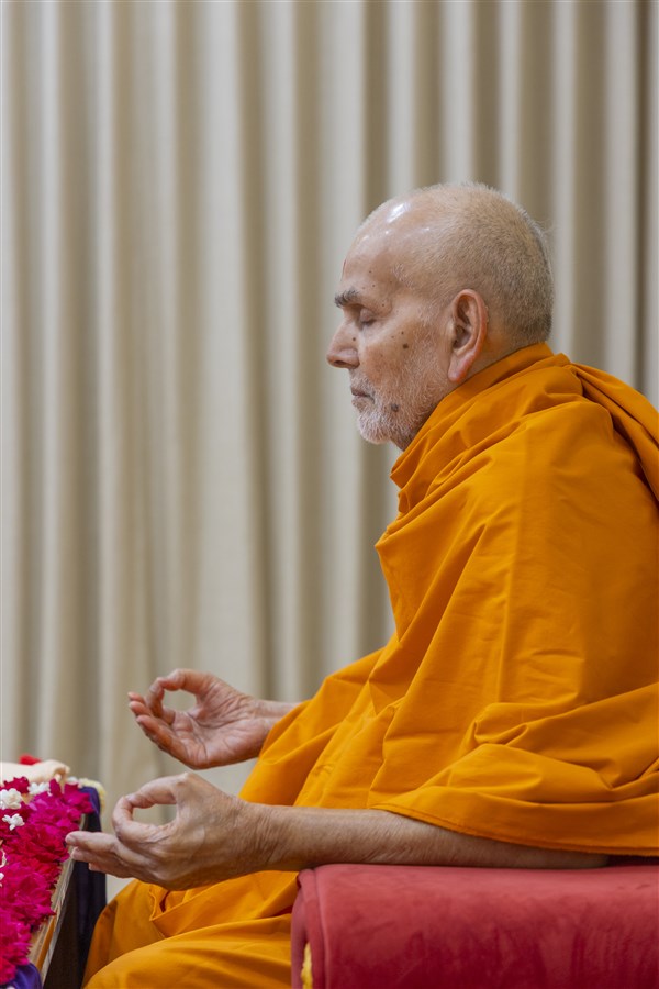 Swamishri meditates in his daily puja