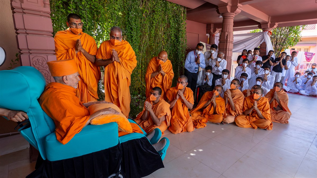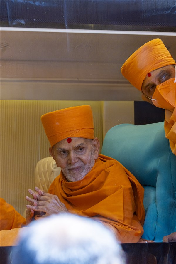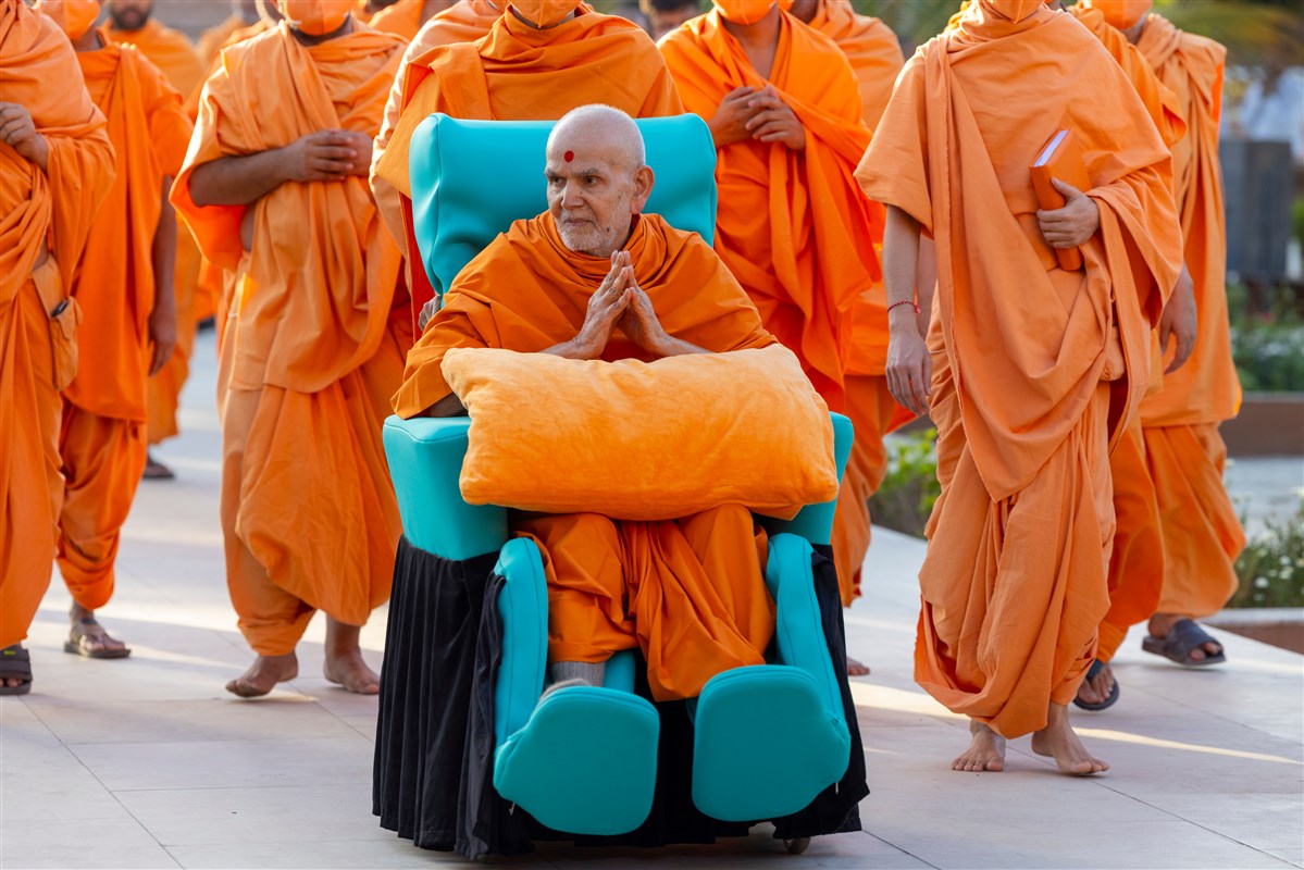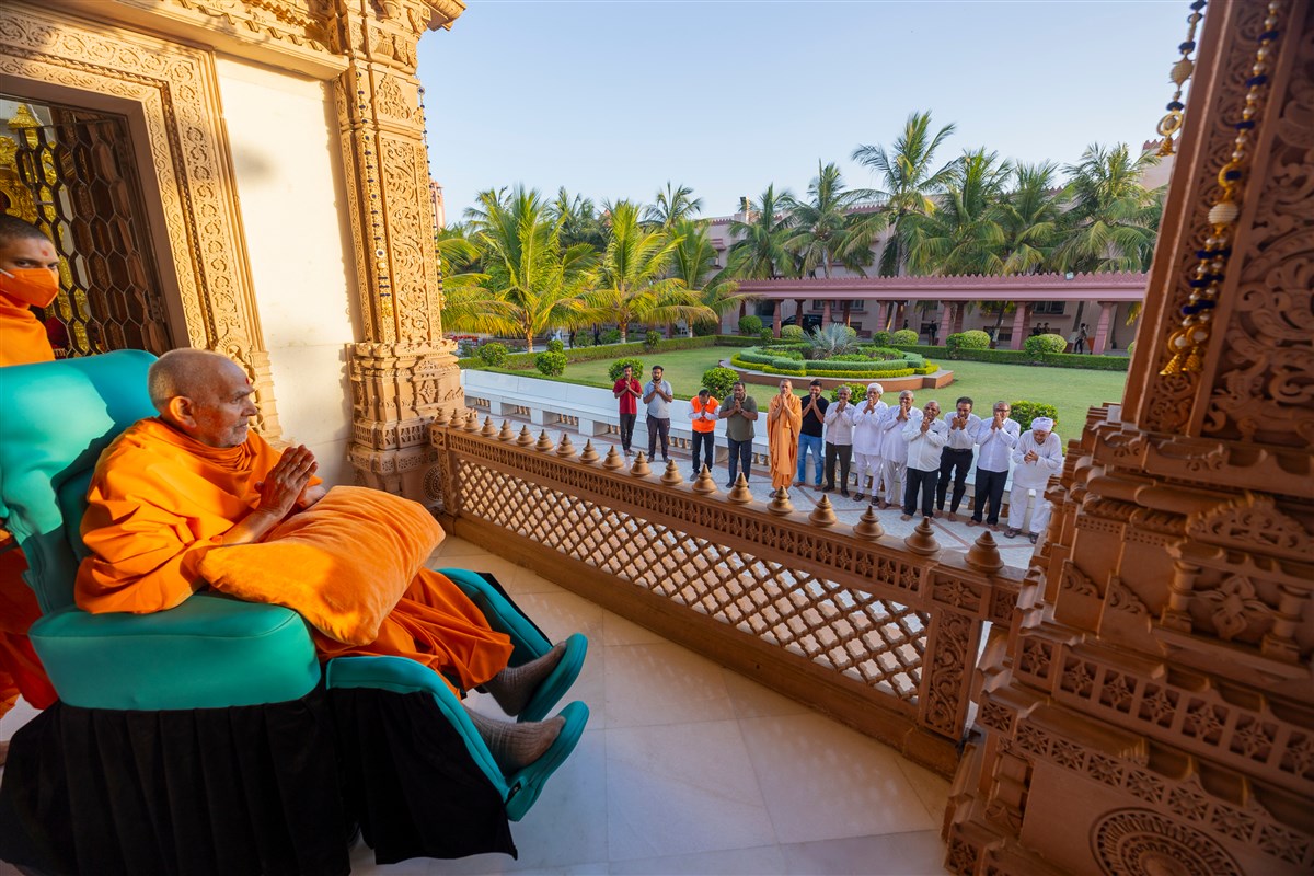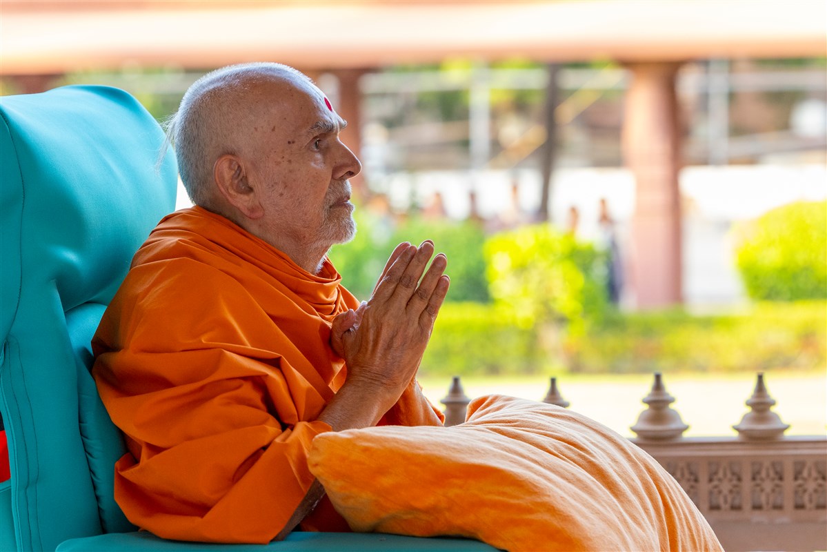 Swamishri greets all with folded hands