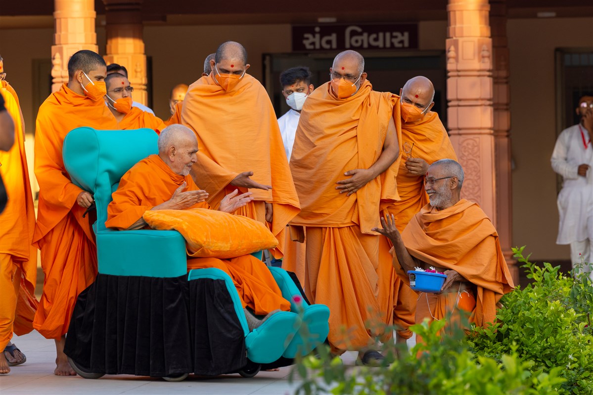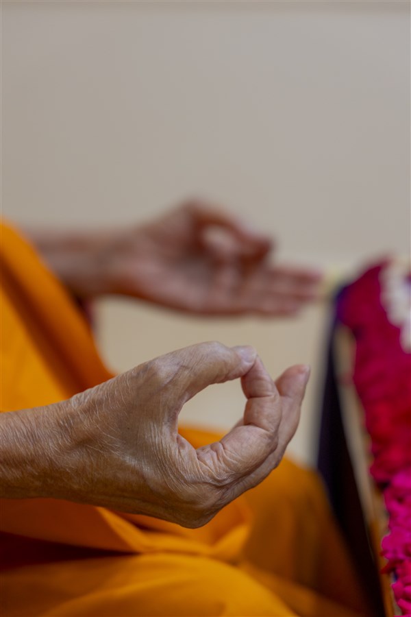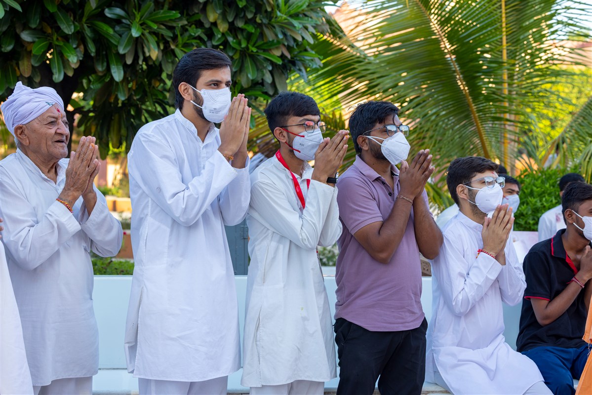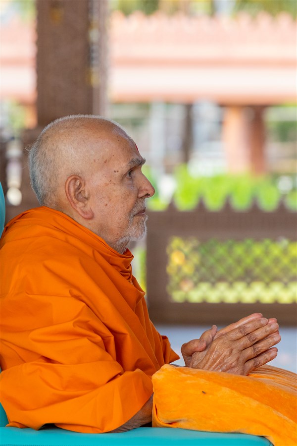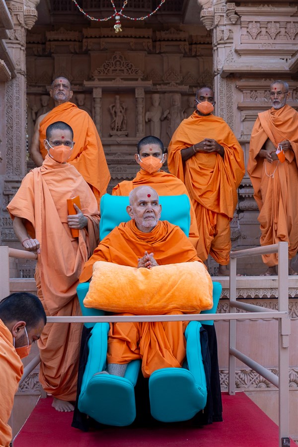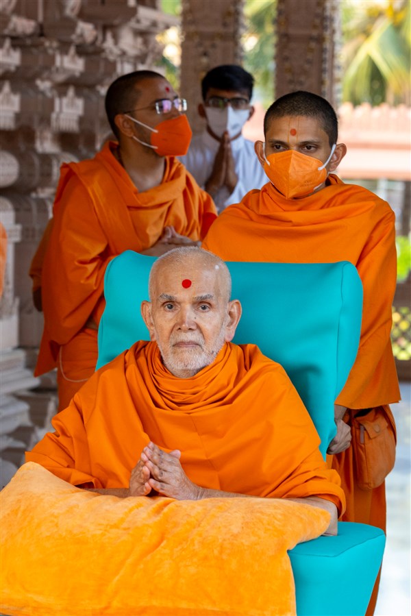 Swamishri greets all with folded hands