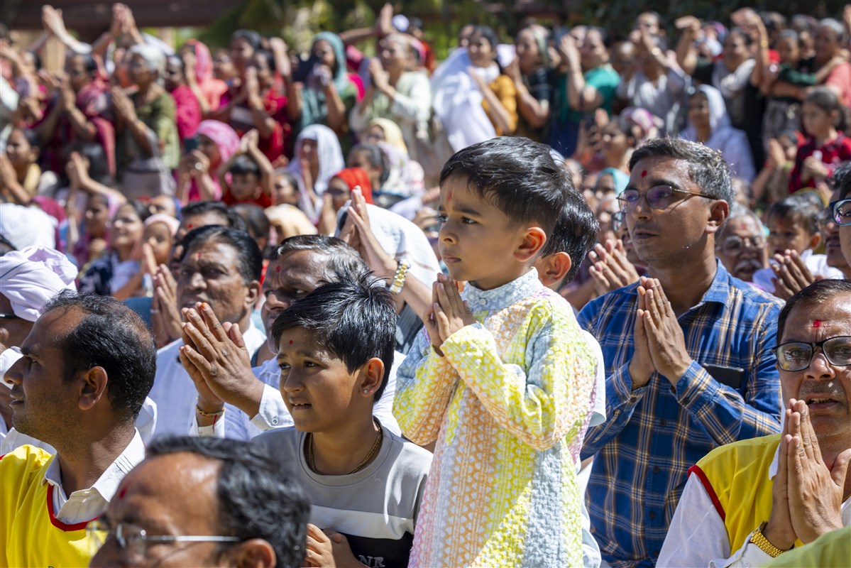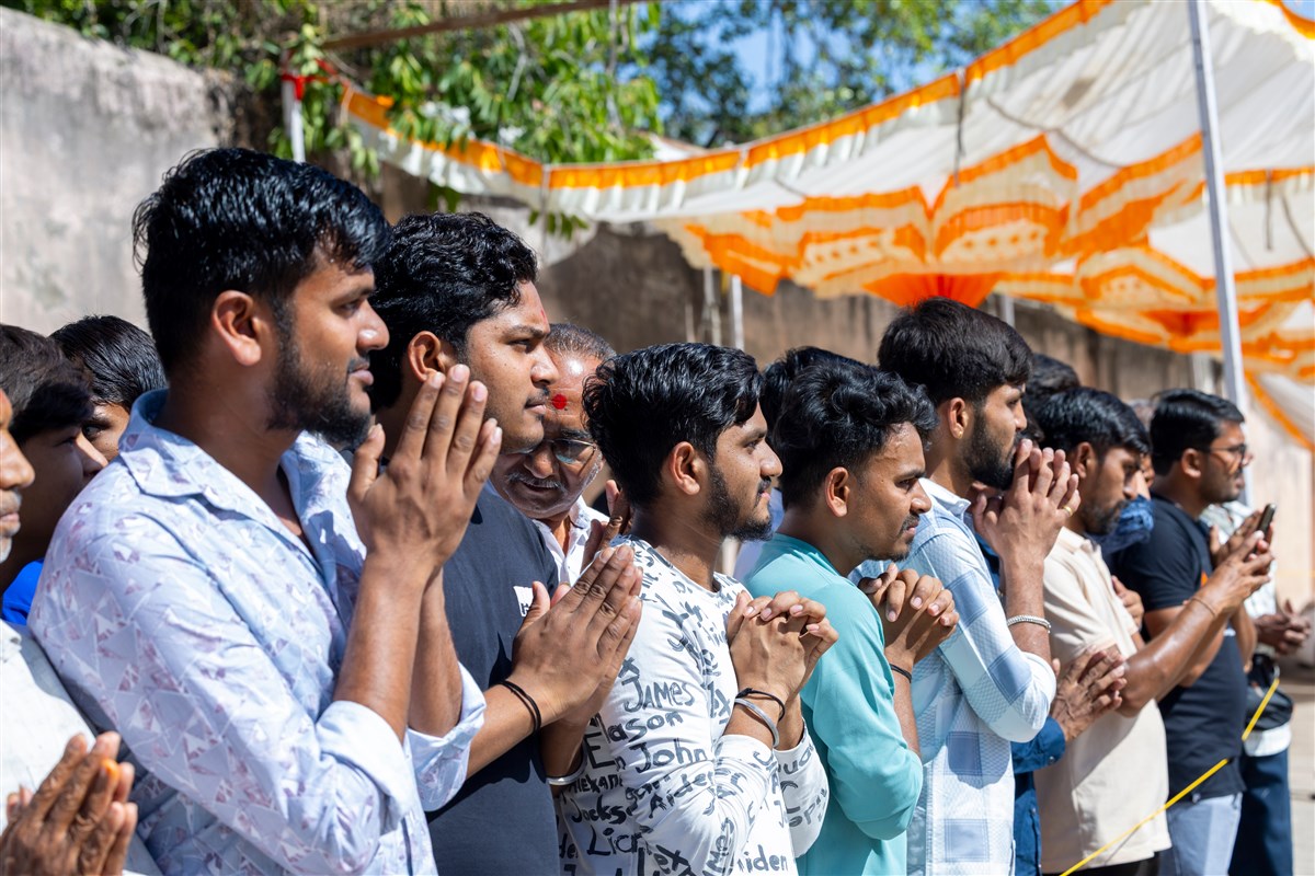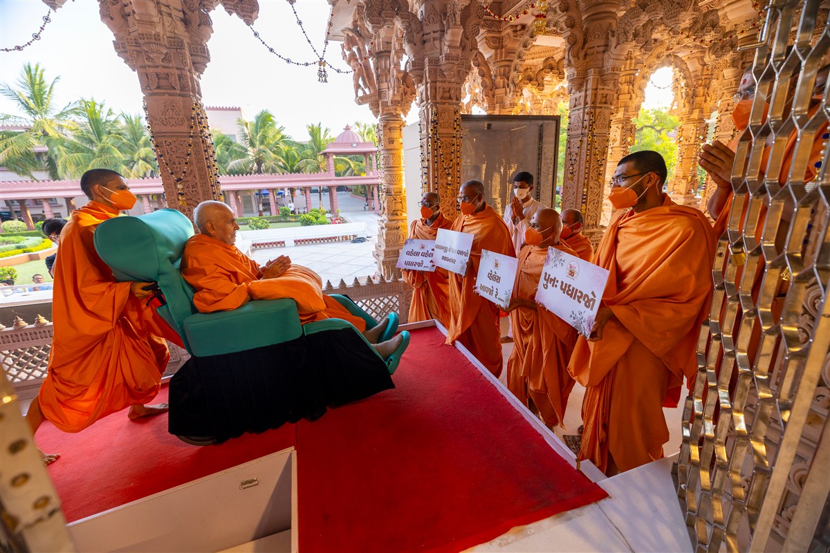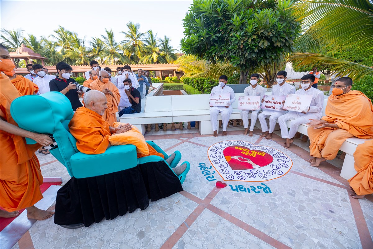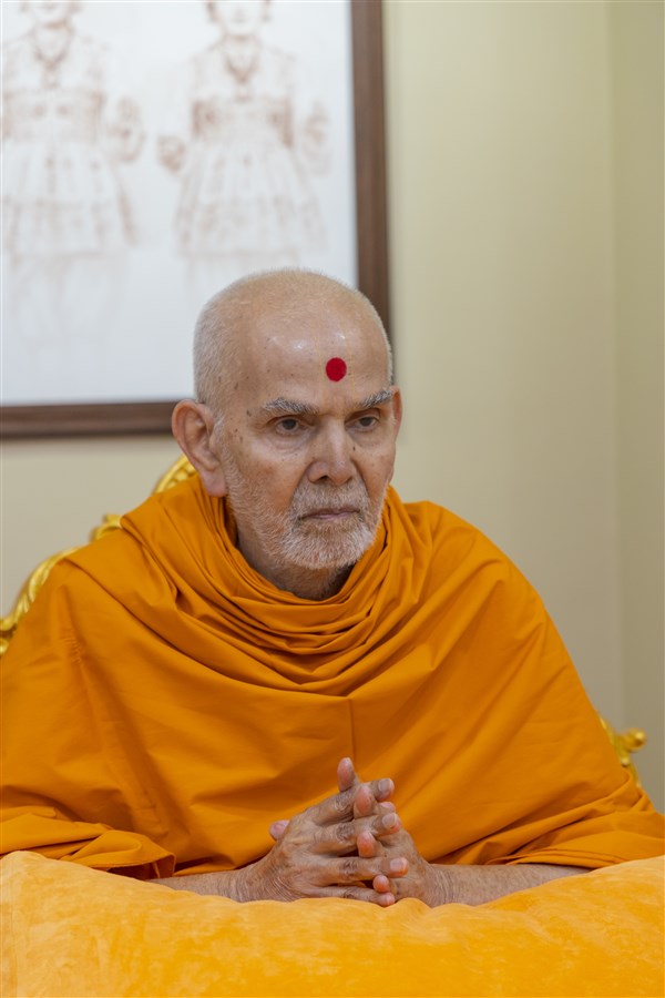 Swamishri greets all with folded hands
