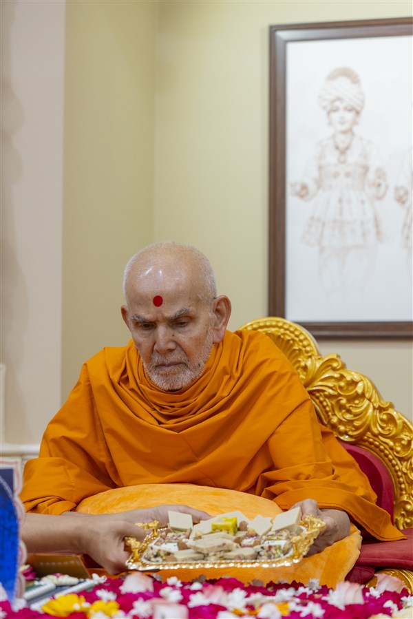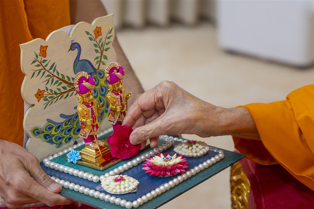 Swamishri offers thal to Thakorji