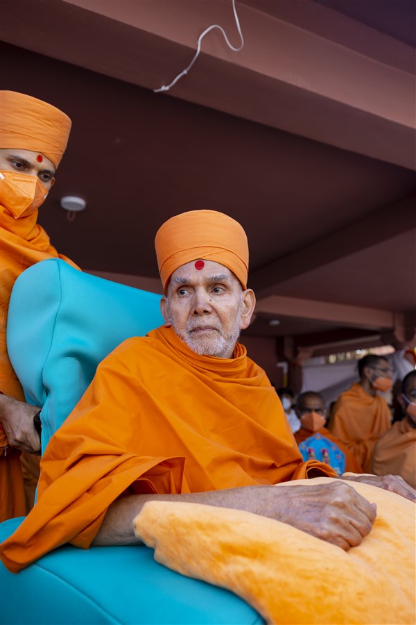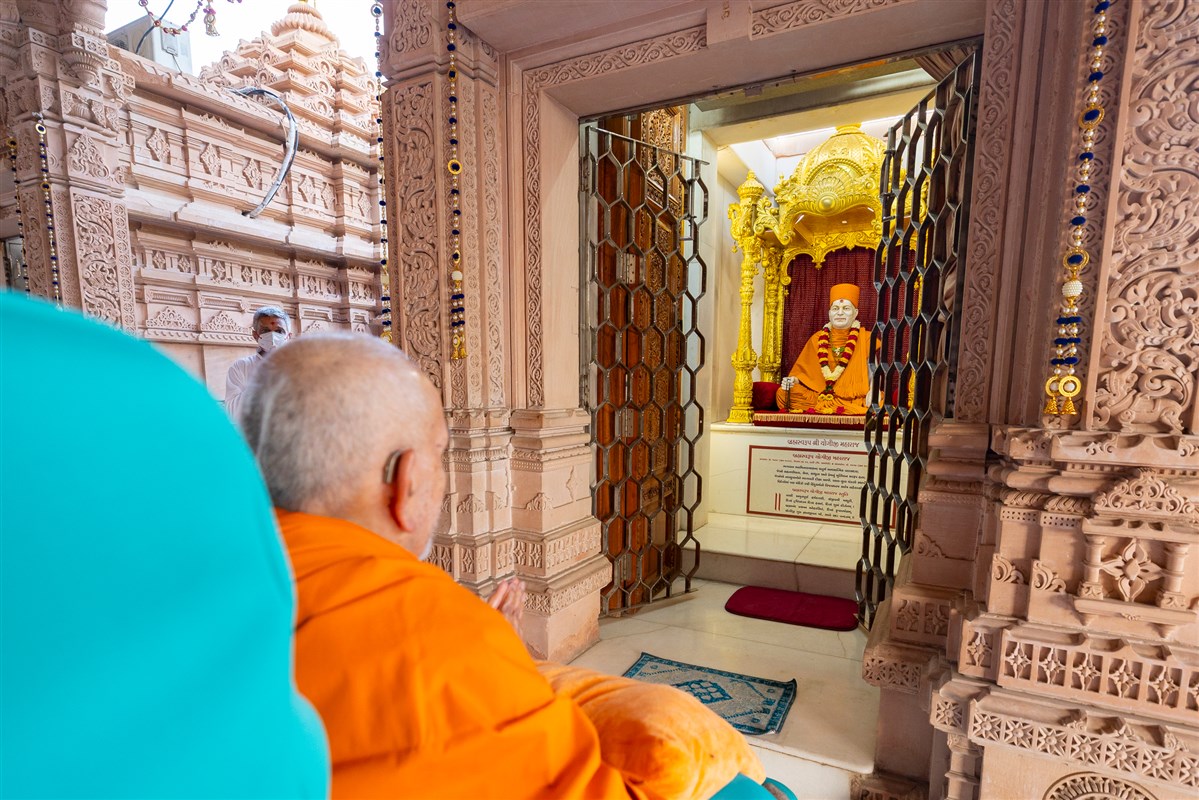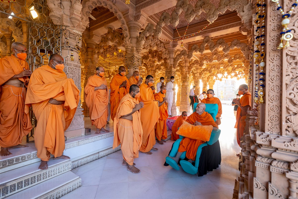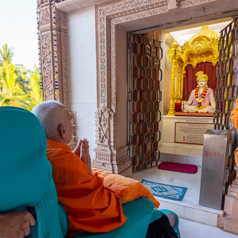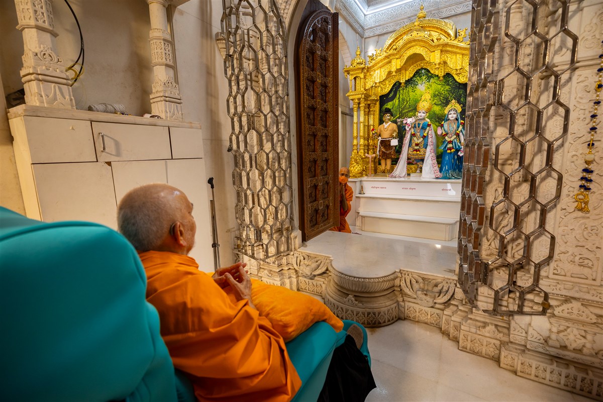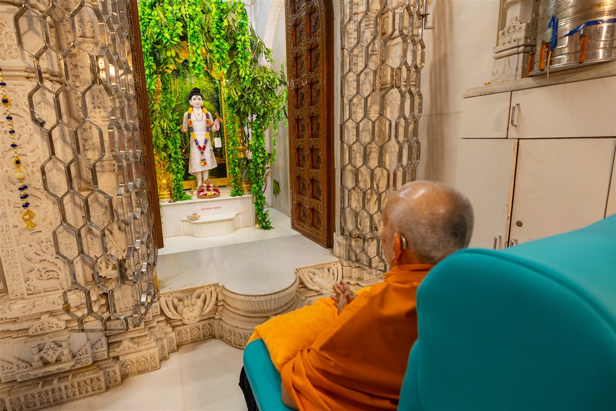 Swamishri arrives for Thakorji's darshan
