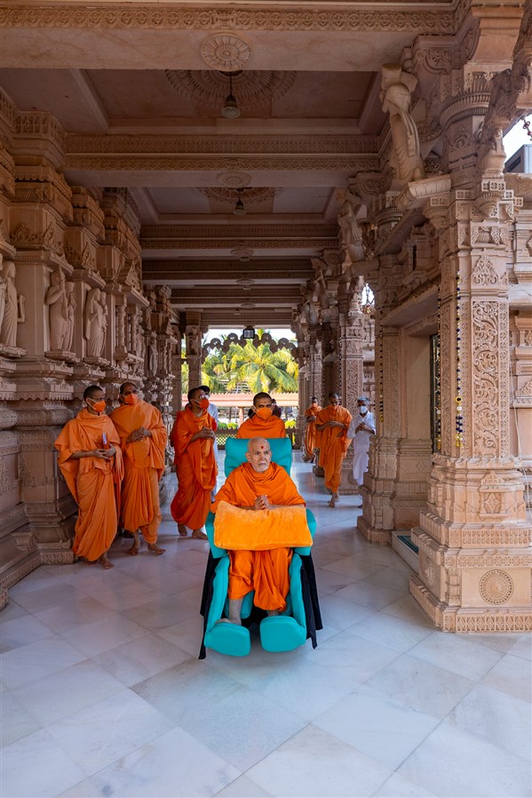 Swamishri in the mandir pradakshina