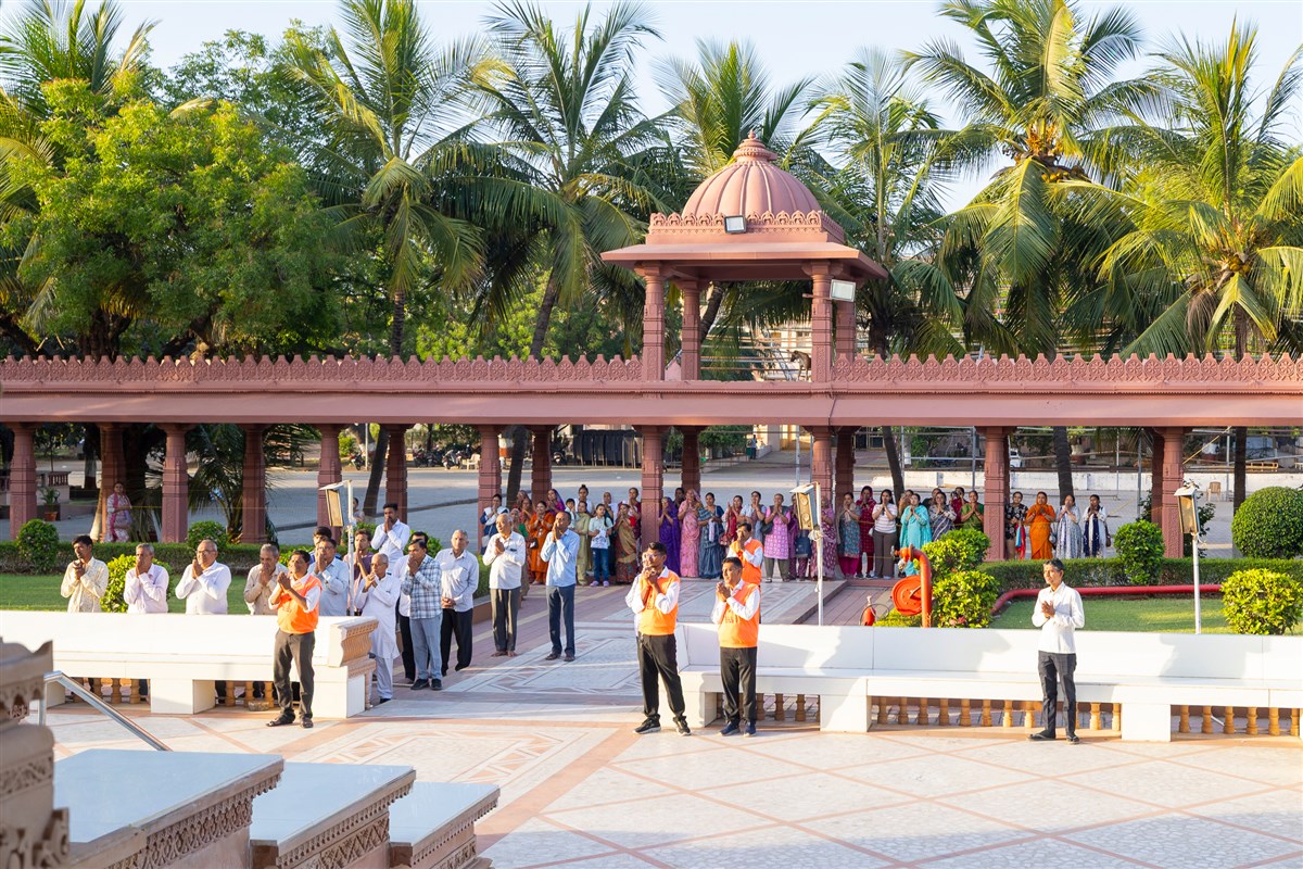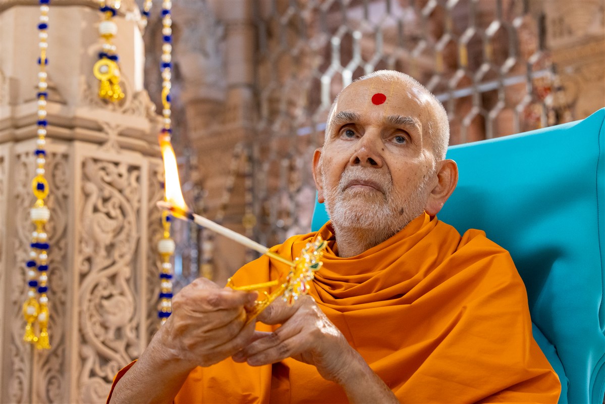 Swamishri performs the morning arti