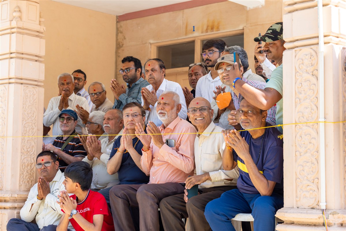 Swamis and devotees doing darshan of Swamishri