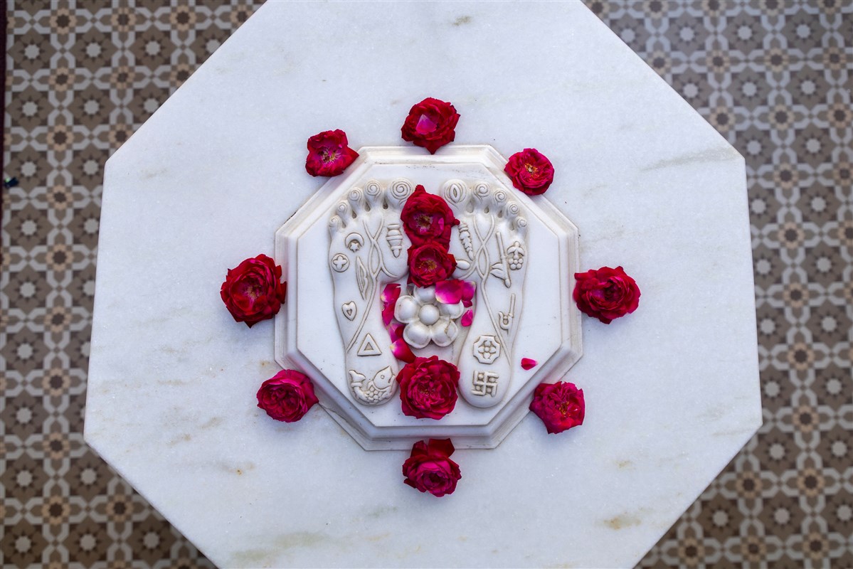 Holy charanarvind of Bhagwan Swaminarayan at the site of Shastriji Maharaj's suvarna tula in 1949