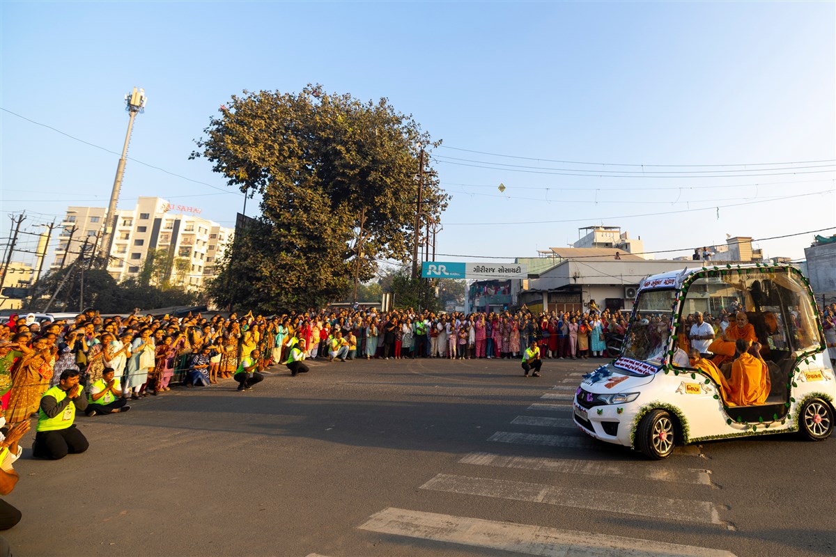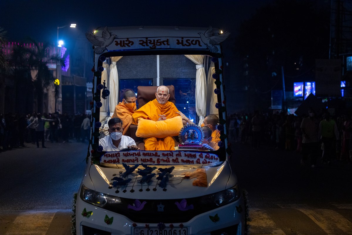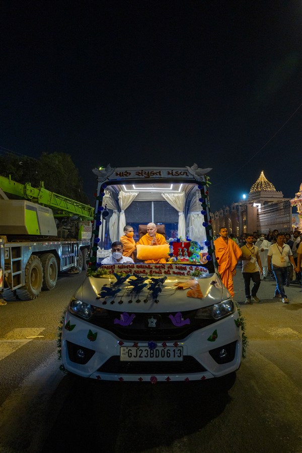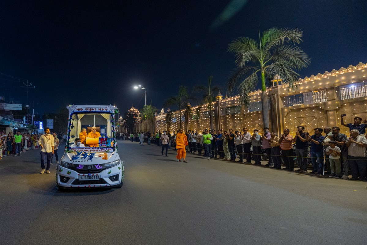 Param Pujya Mahant Swami Maharaj on his way to the assembly hall