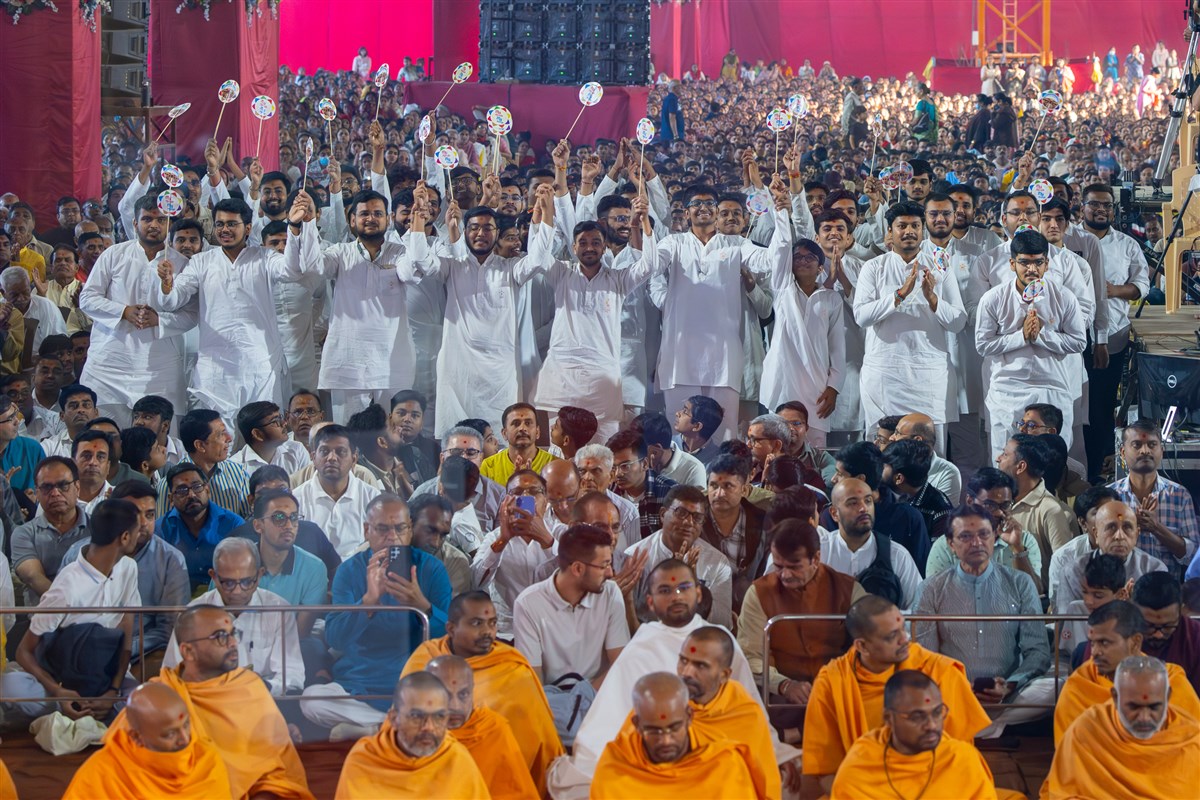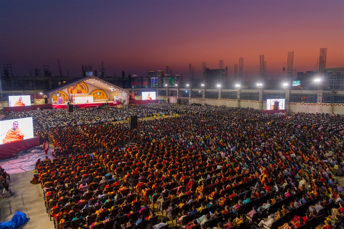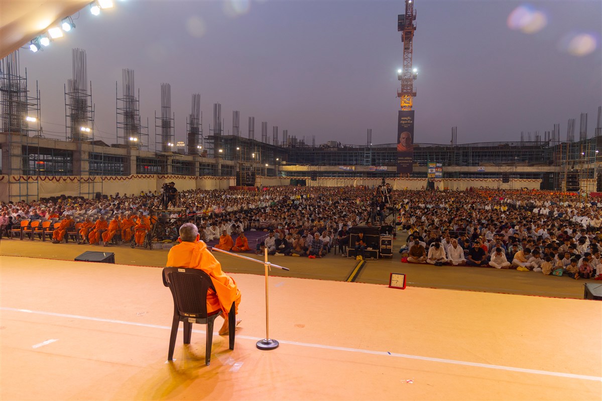 Param Pujya Mahant Swami Maharaj on his way to the assembly hall