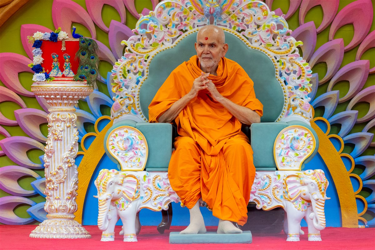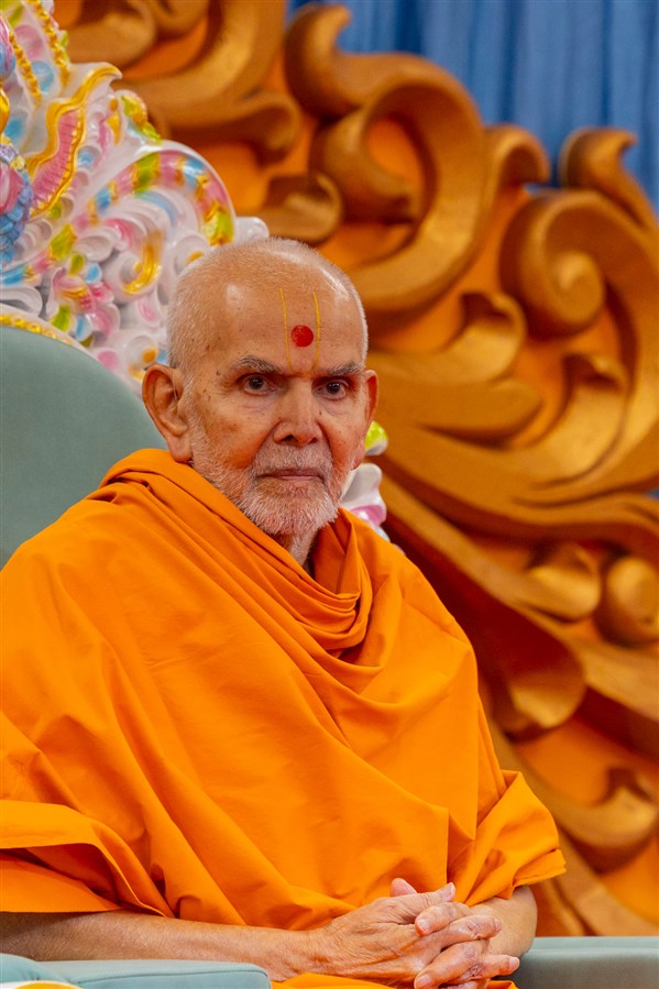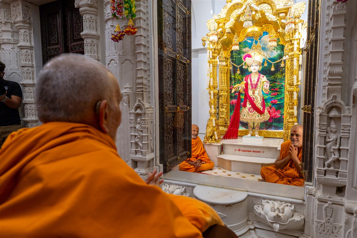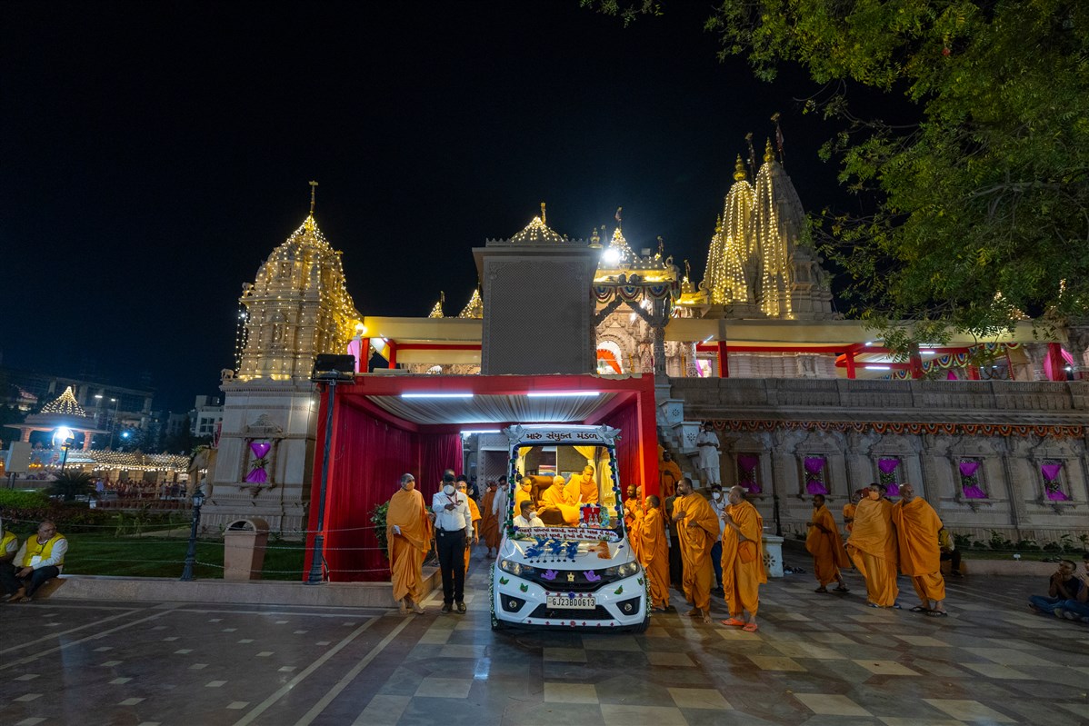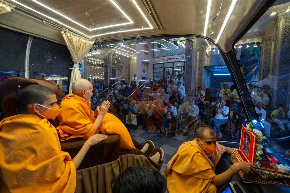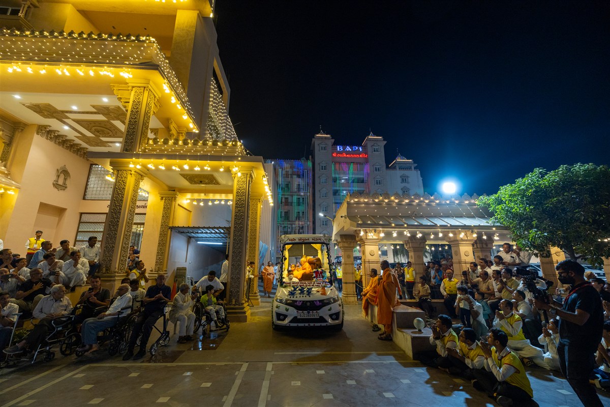 Swamishri arrives for Thakorji's darshan in the evening