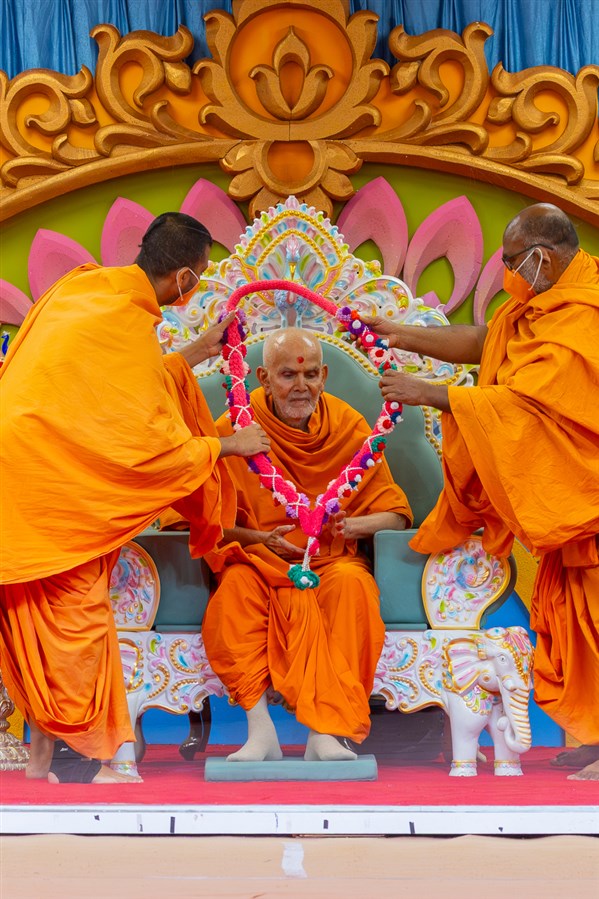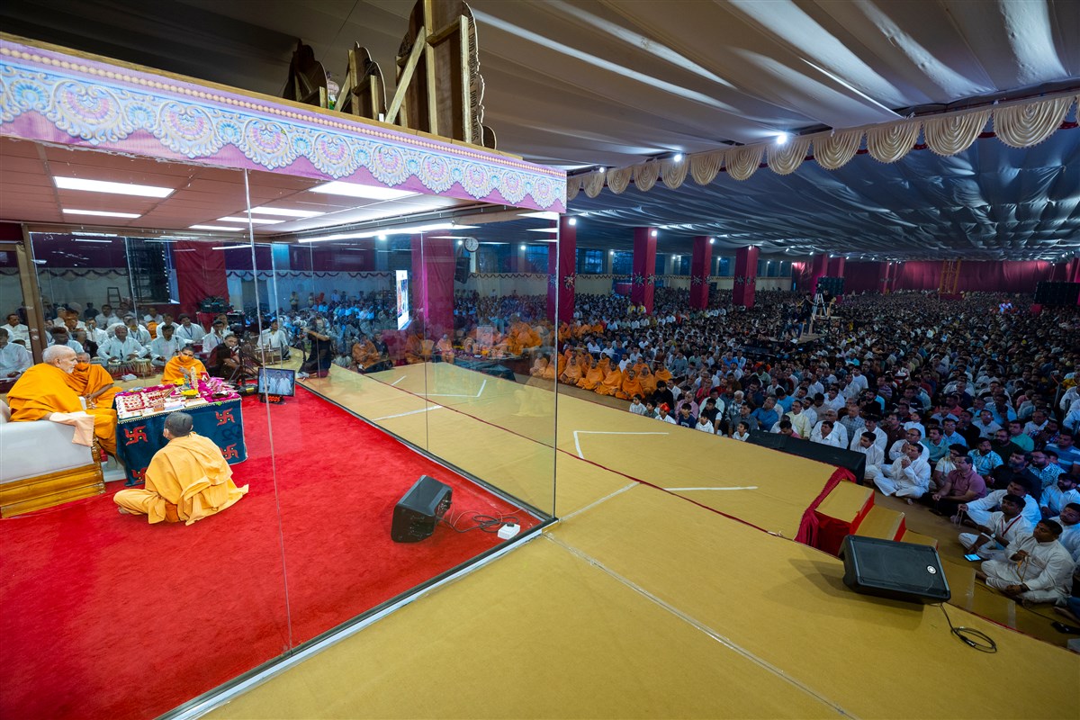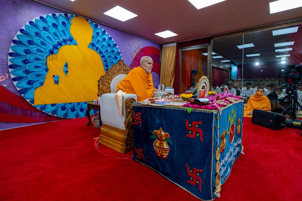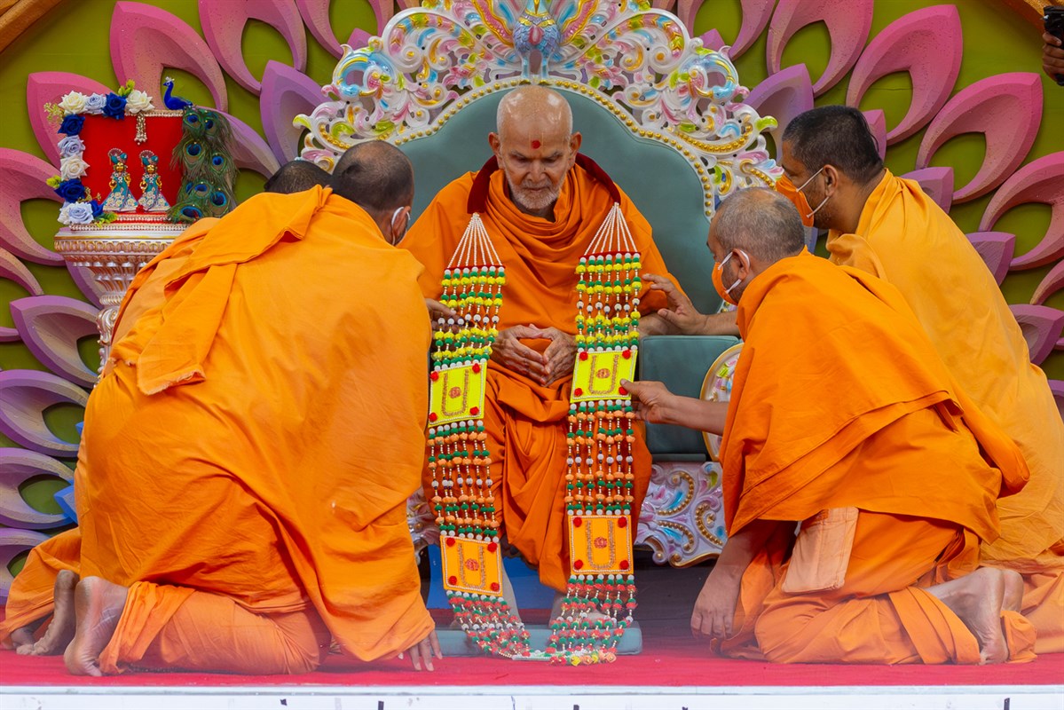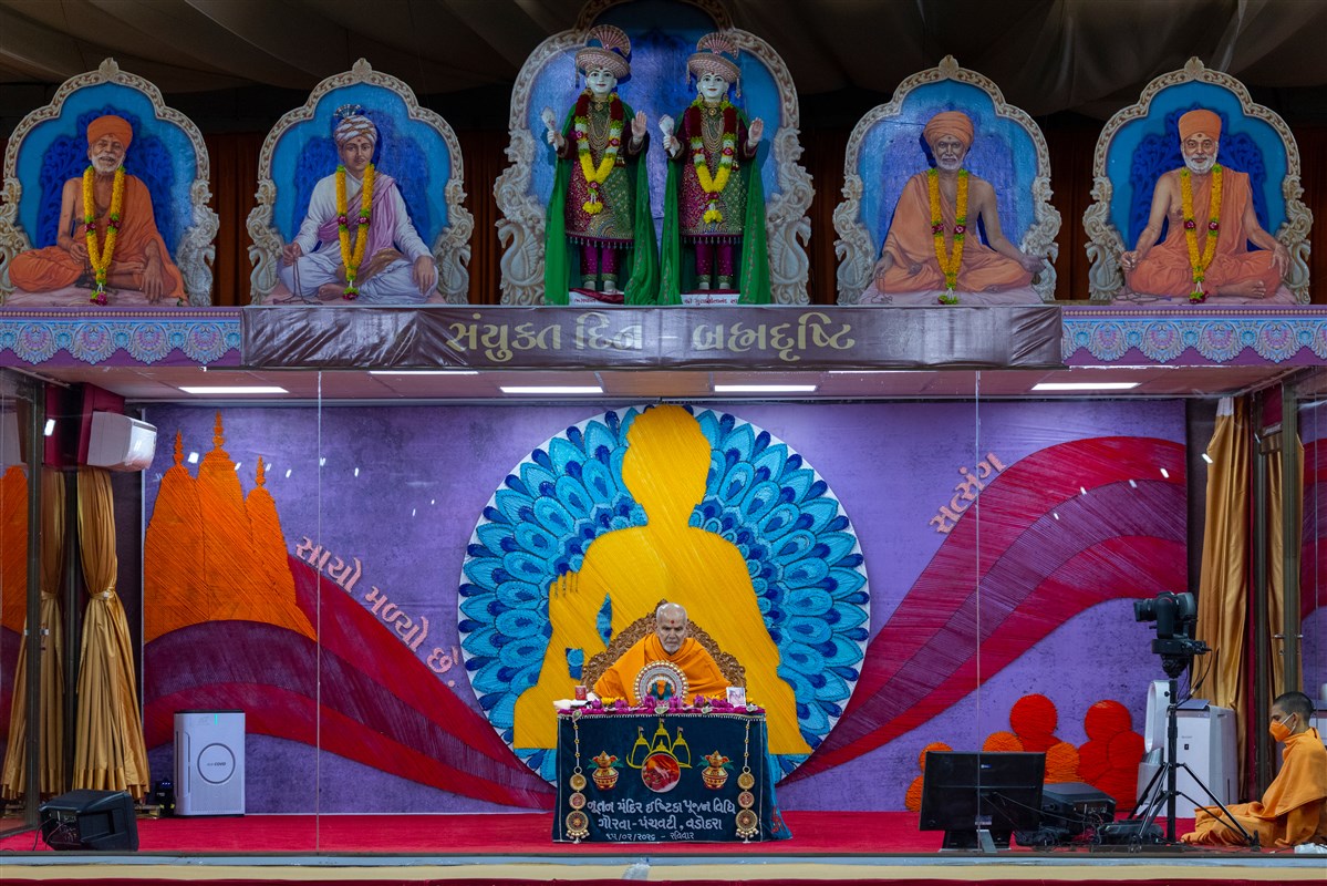 Swamishri arrives for Thakorji's darshan in the evening