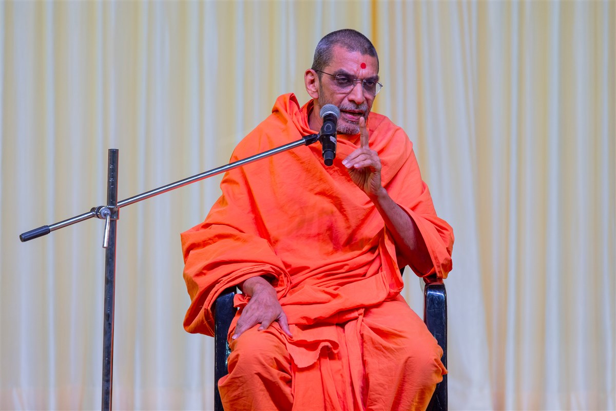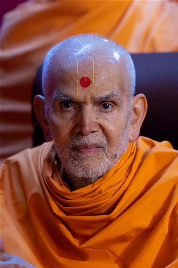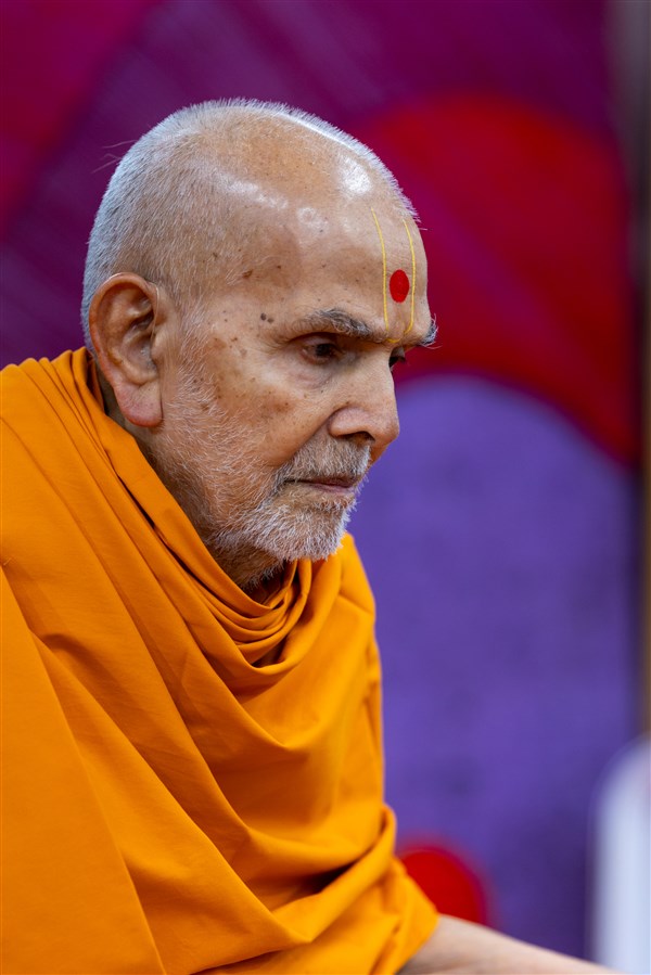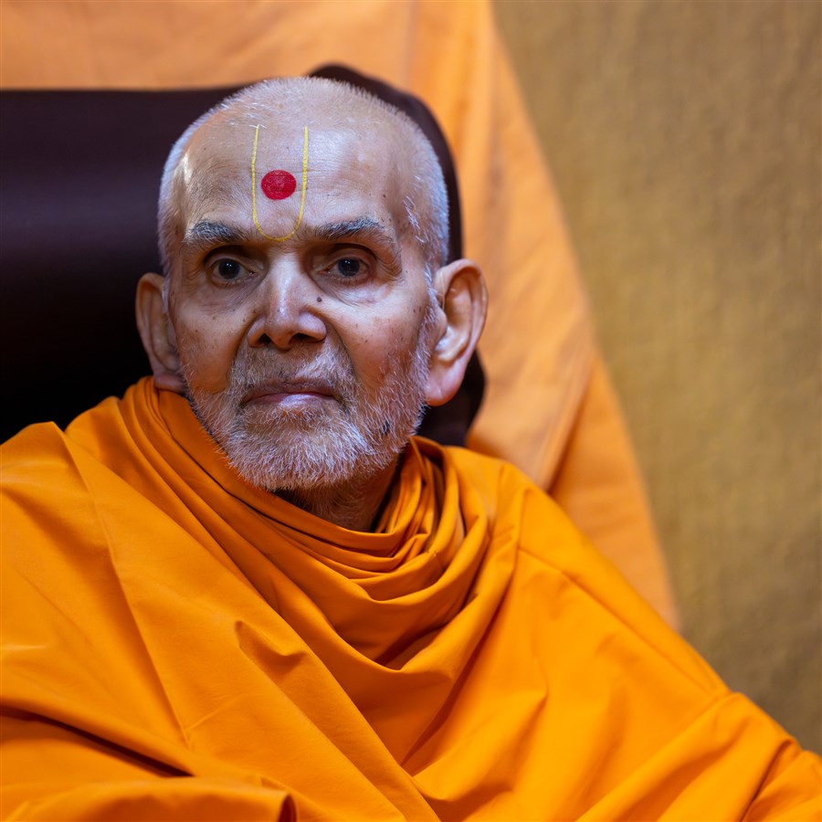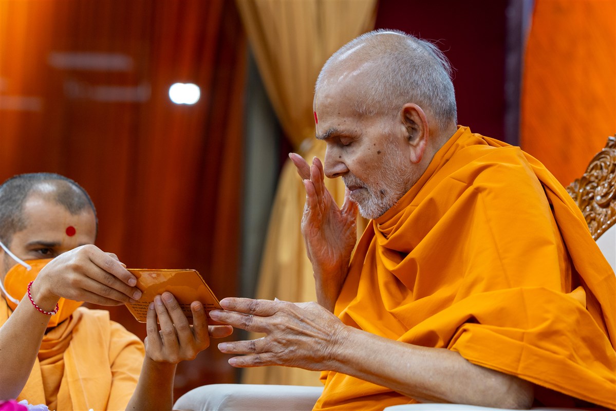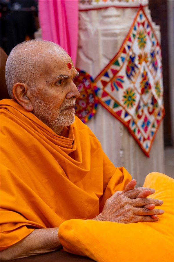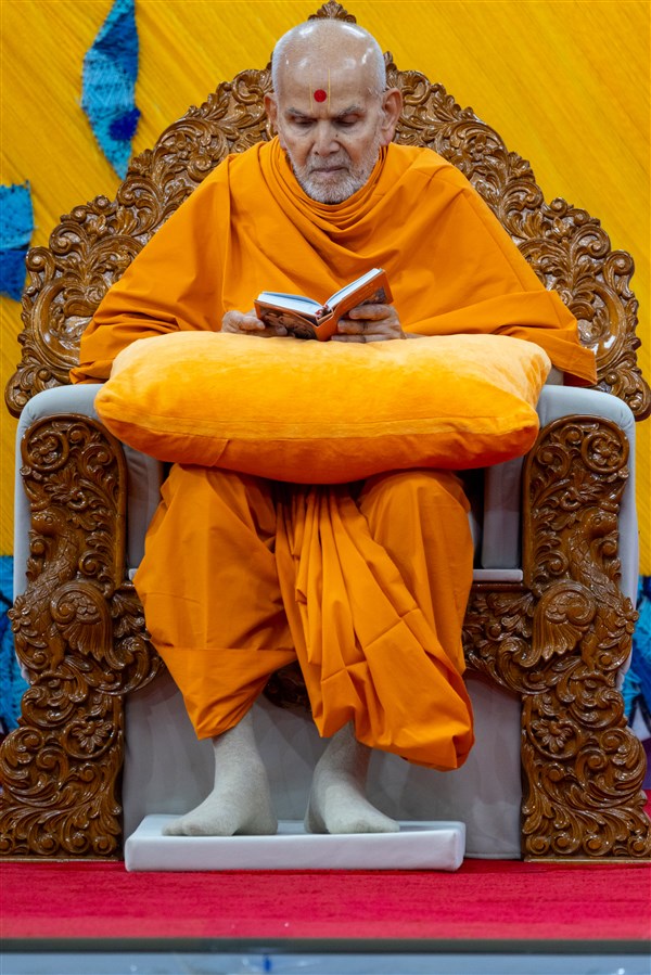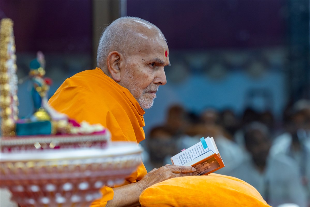 Swamishri listens to the sadhana mantra and daily prayer