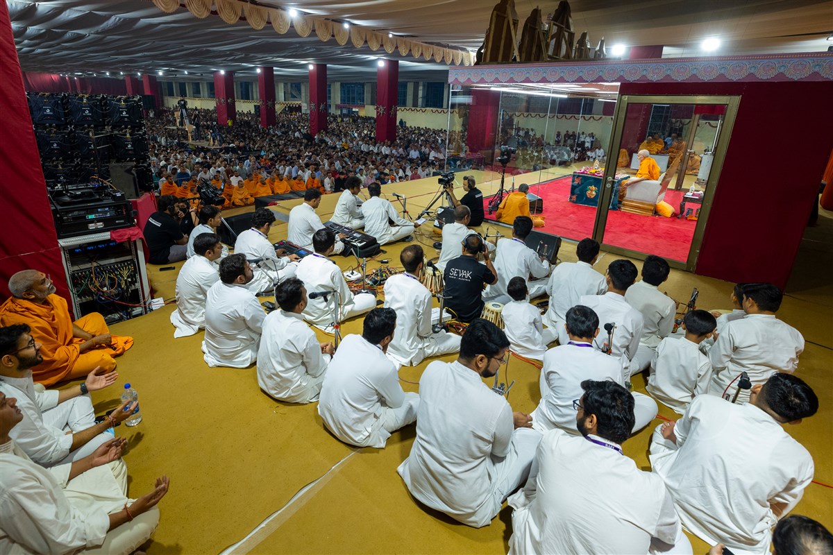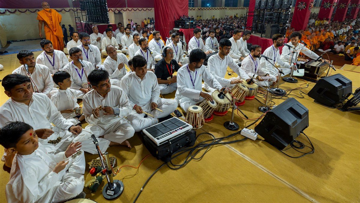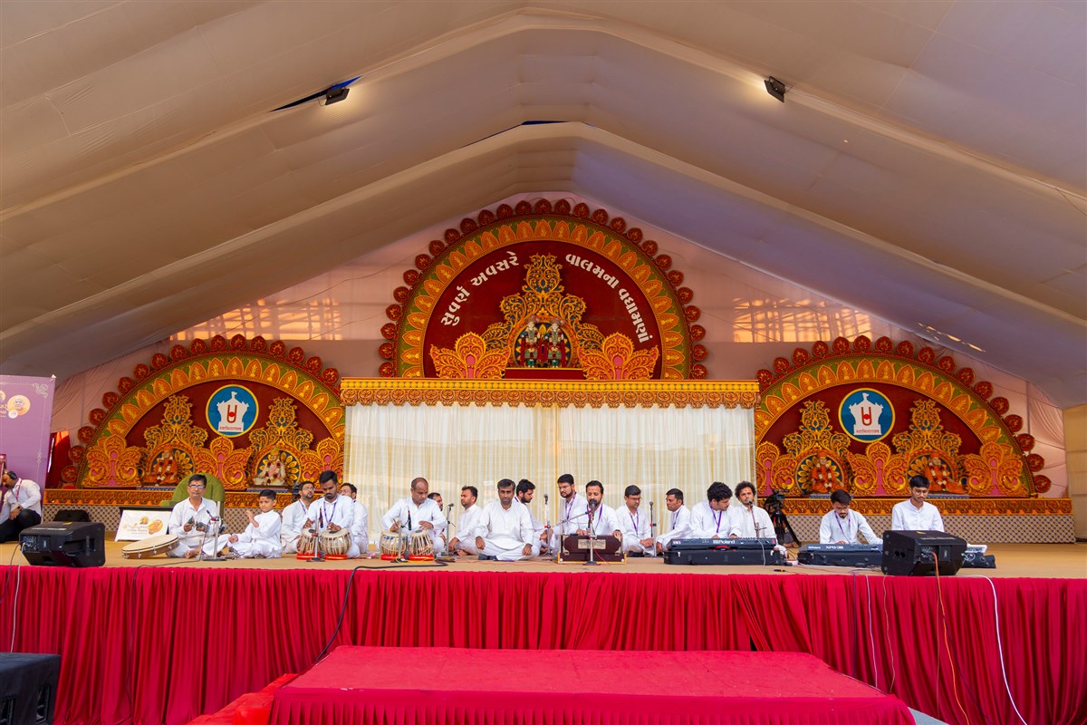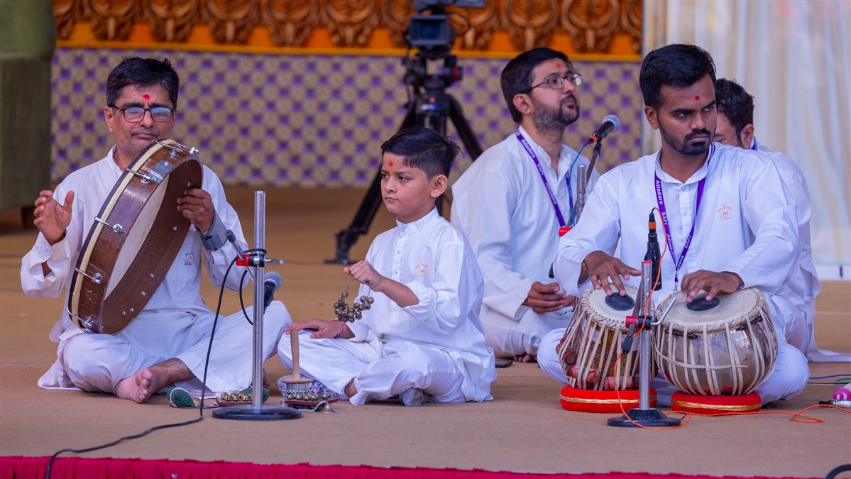 Youths sing kirtans in Swamishri's daily puja