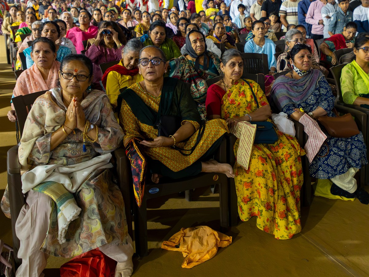 Devotees from Gorwa-Panchvati doing darshan of Swamishri