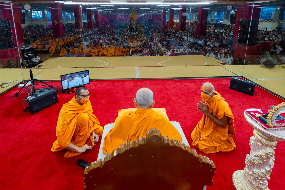 Swamis doing darshan of Swamishri