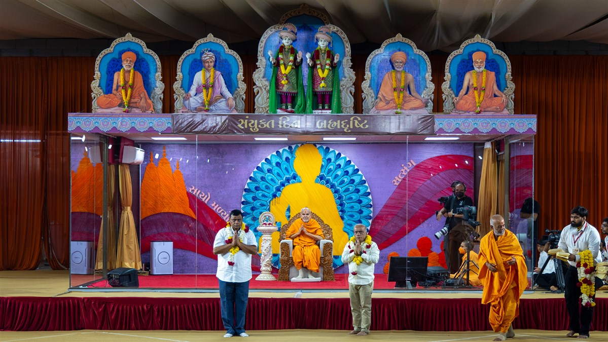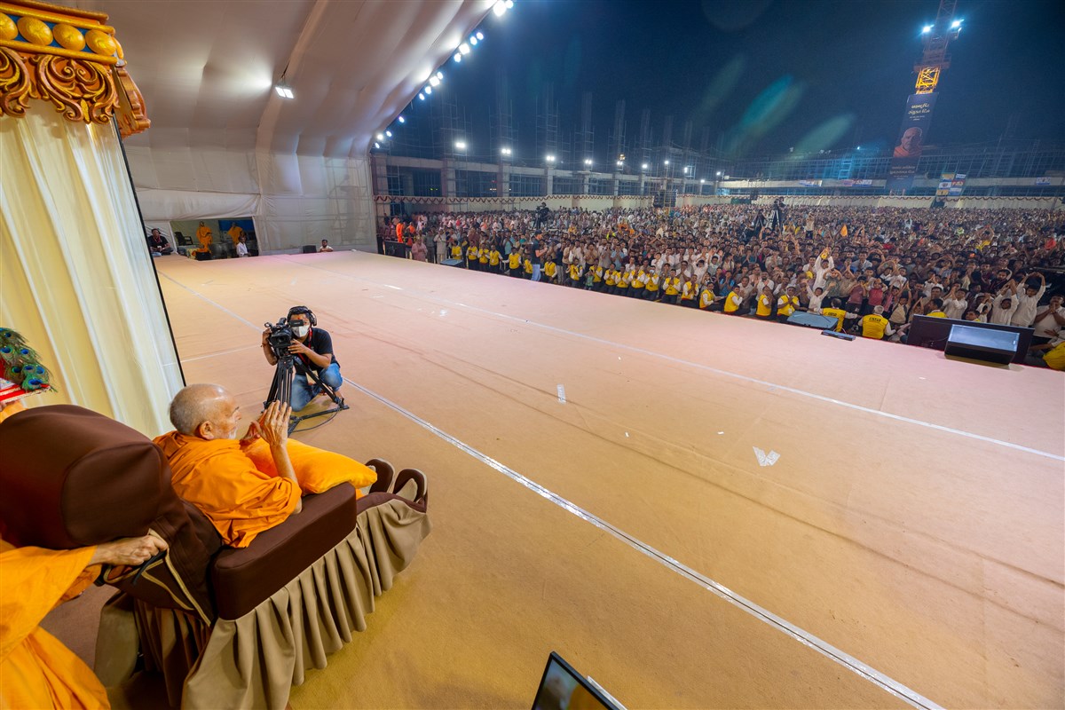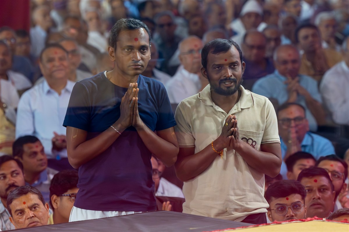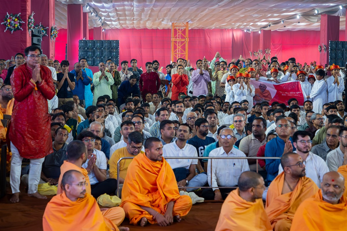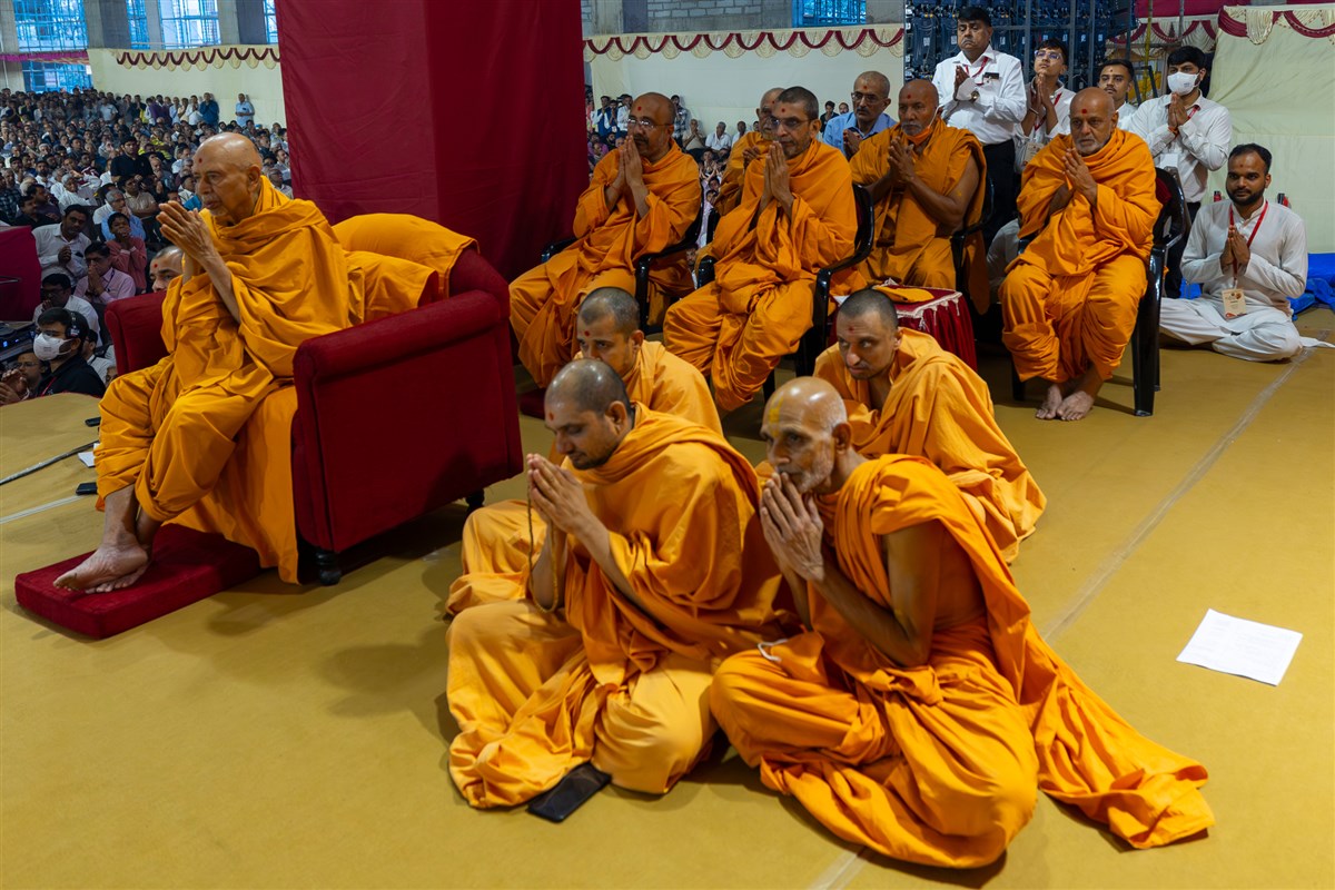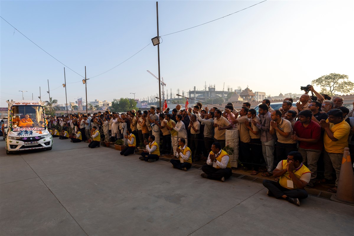 Swamishri greets all with folded hands
