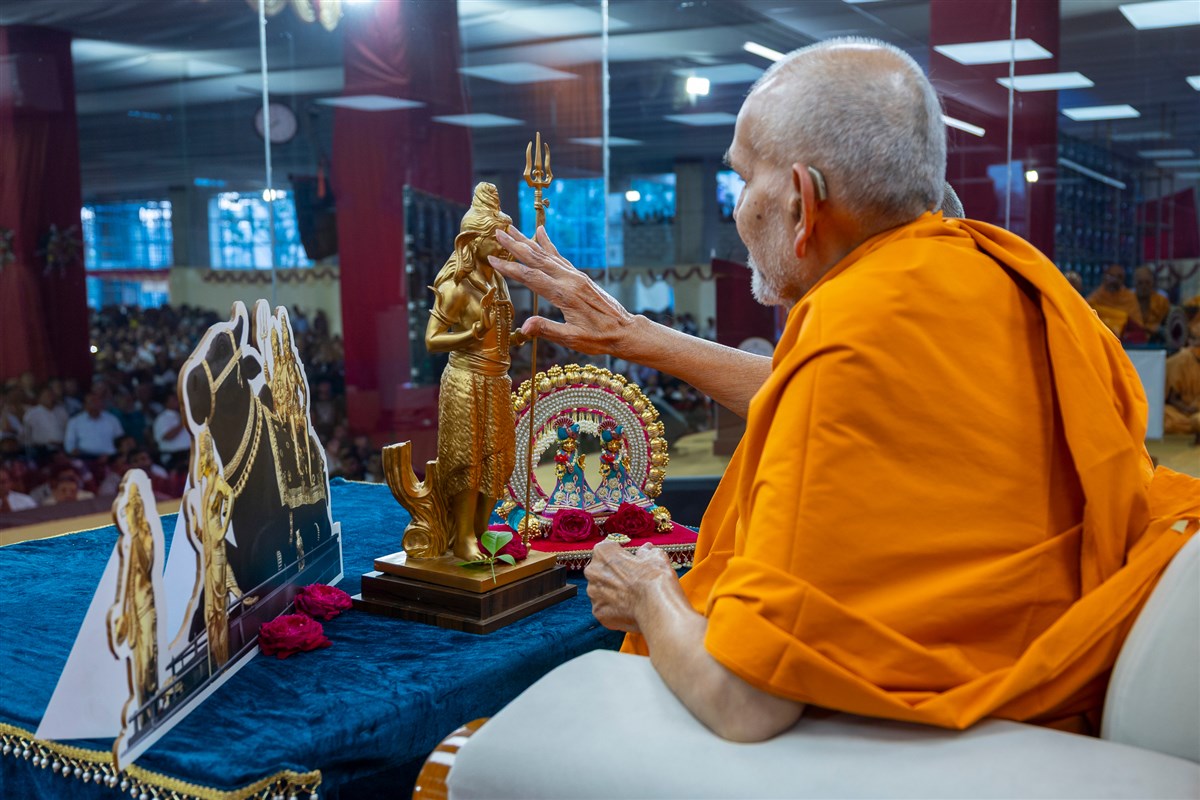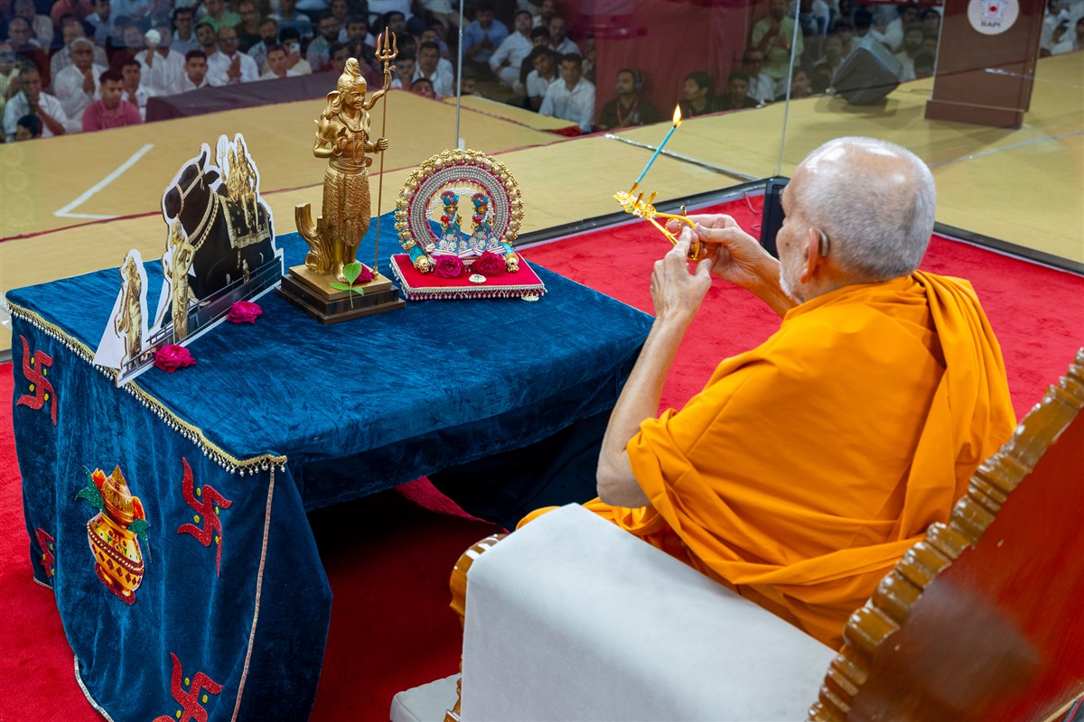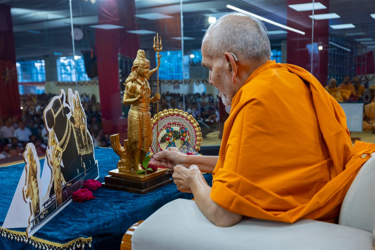 Swamishri offers bili patra to Shri Sarveshwar Mahadev