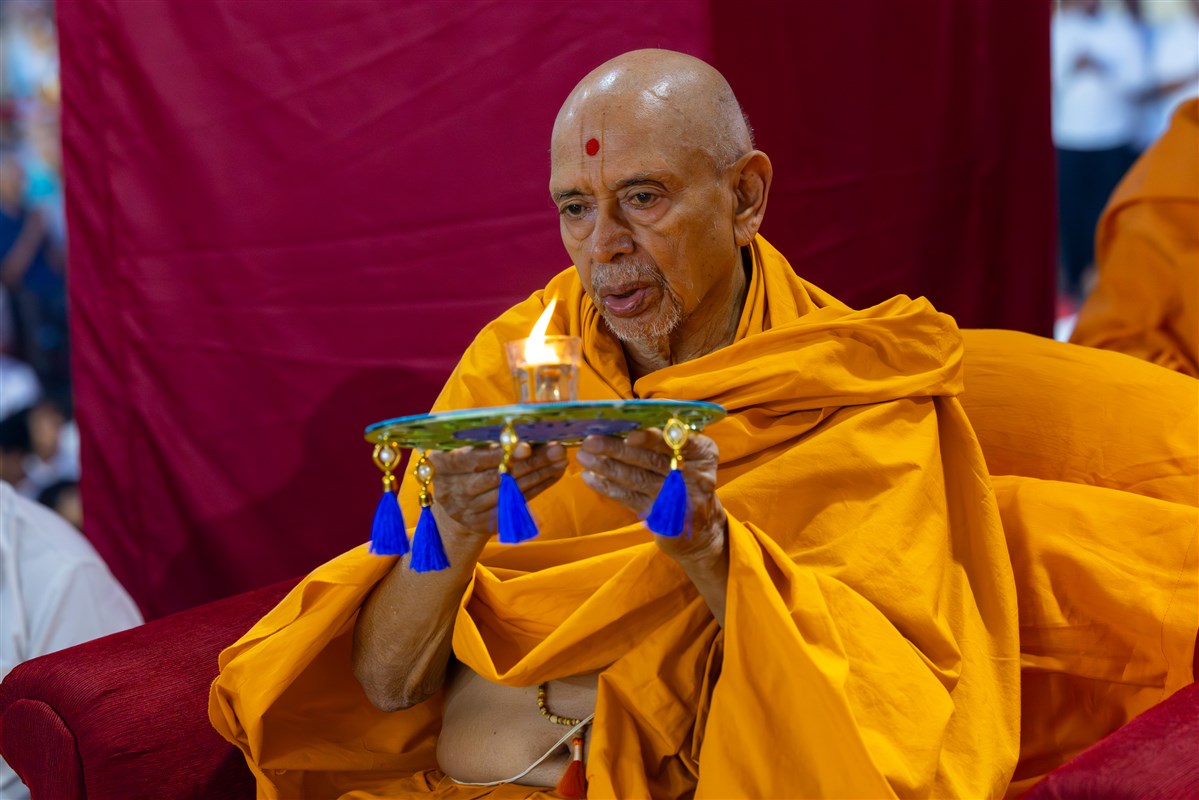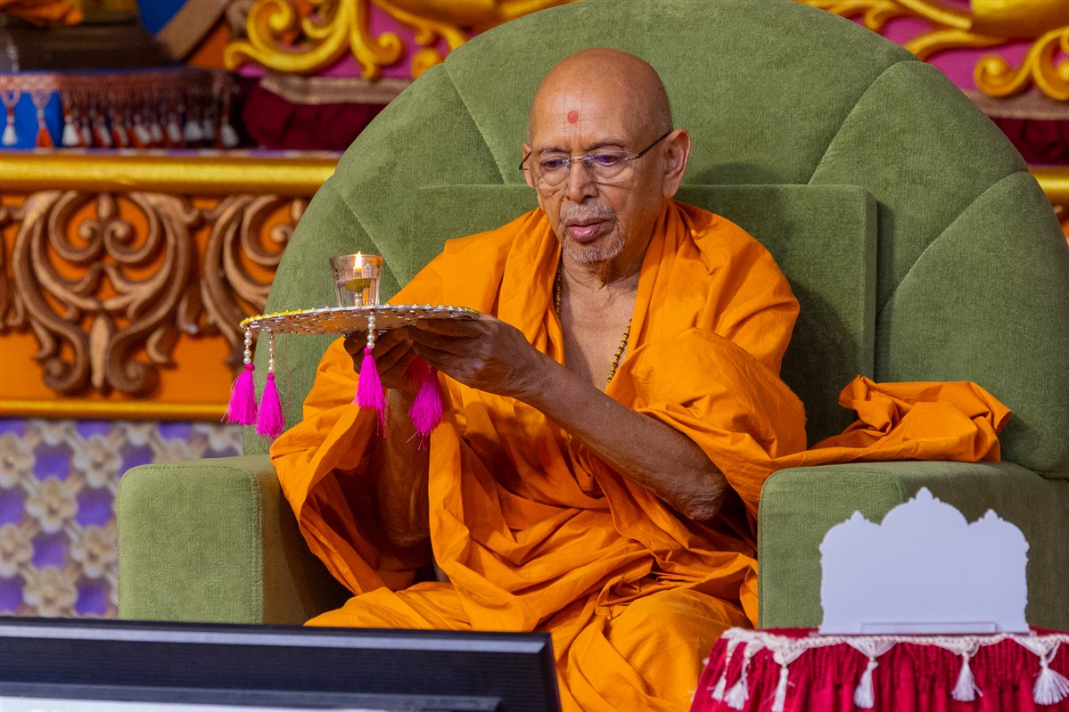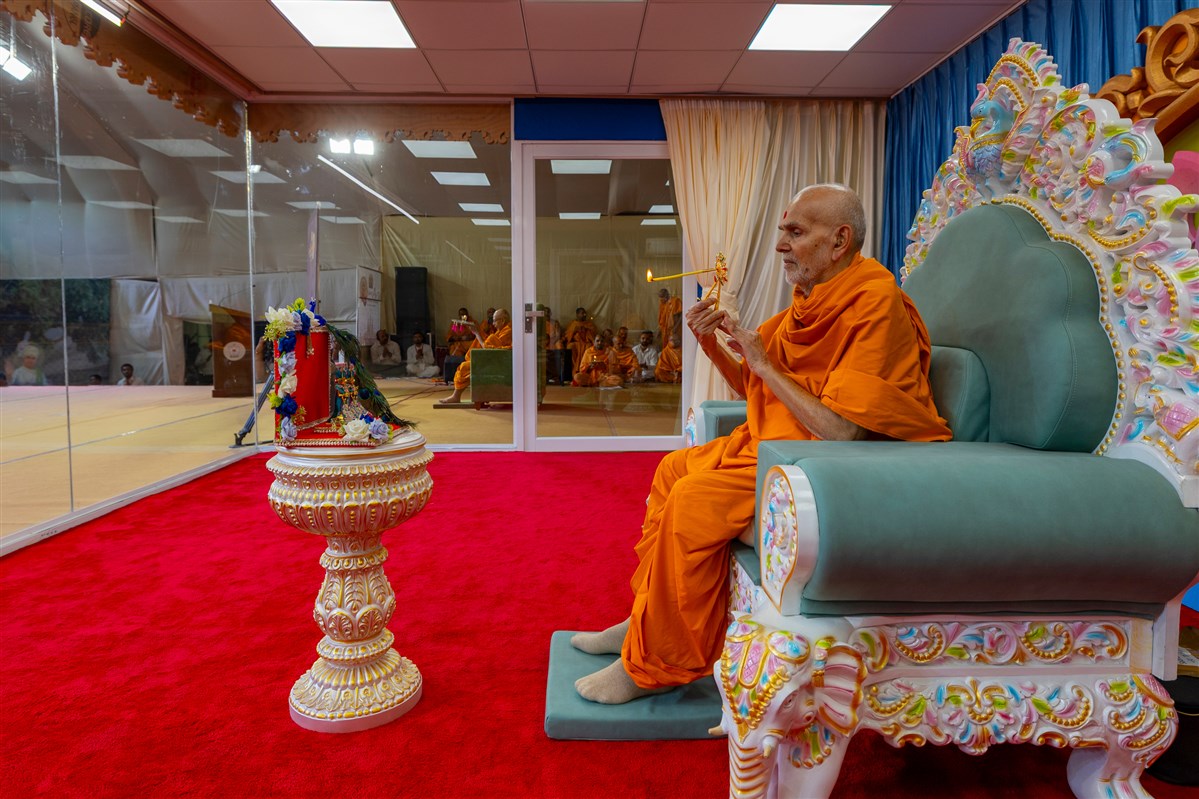 Swamishri performs the morning arti
