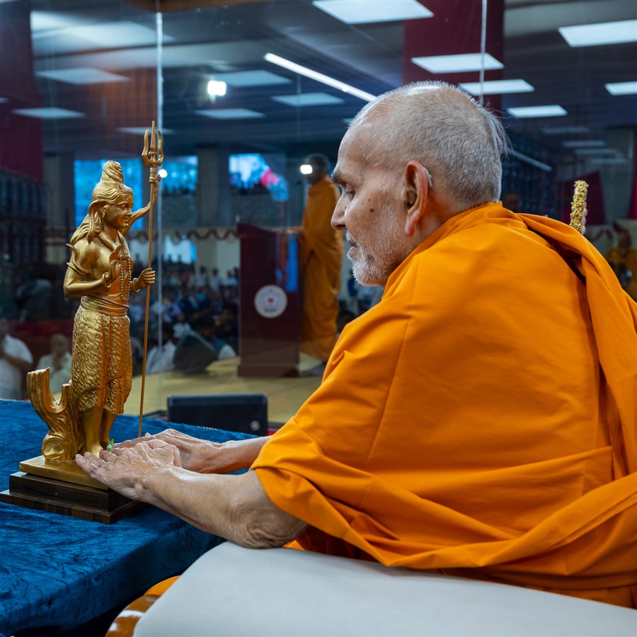 Swamishri engrossed in darshan of Shri Sarveshwar Mahadev