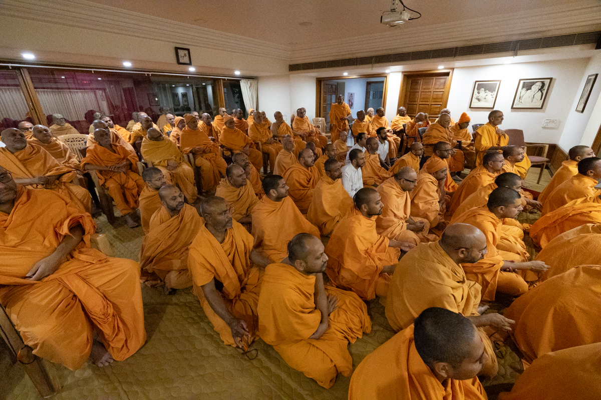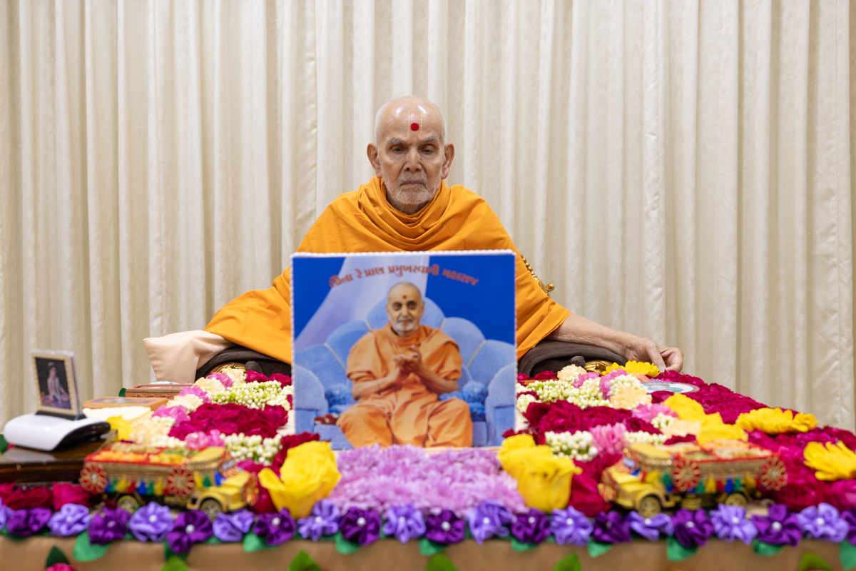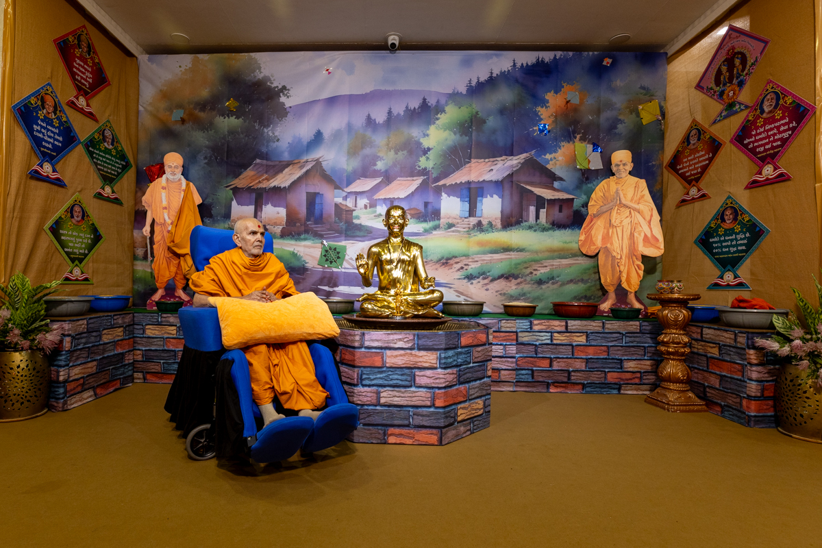 Swamishri arrives for Thakorji's darshan in the evening