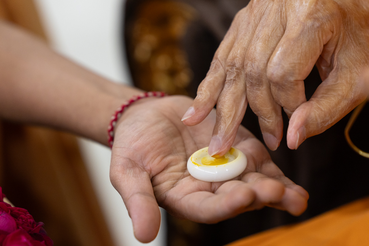 Swamishri applies a chandlo