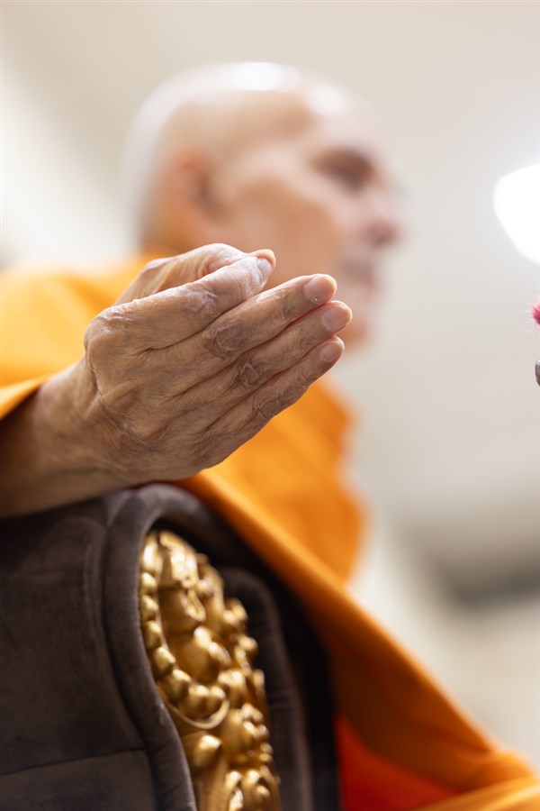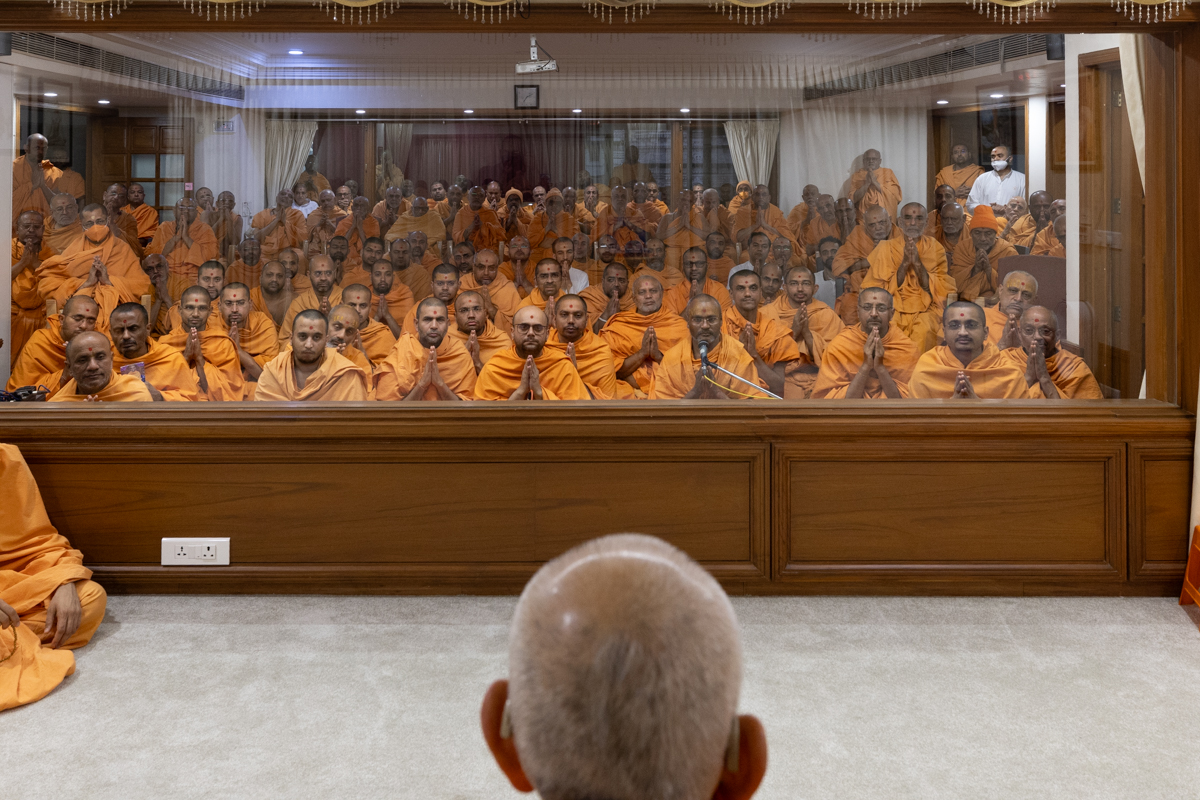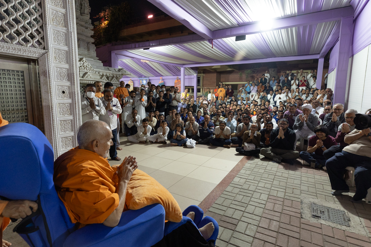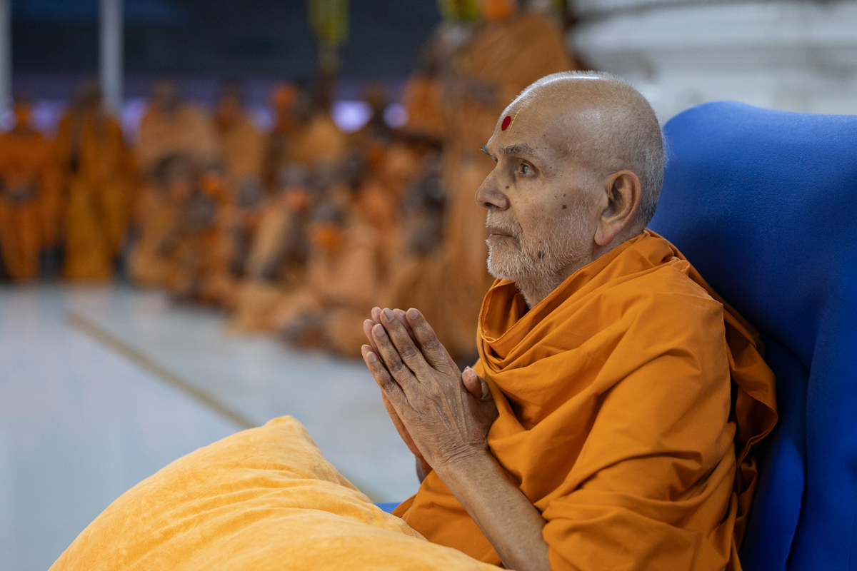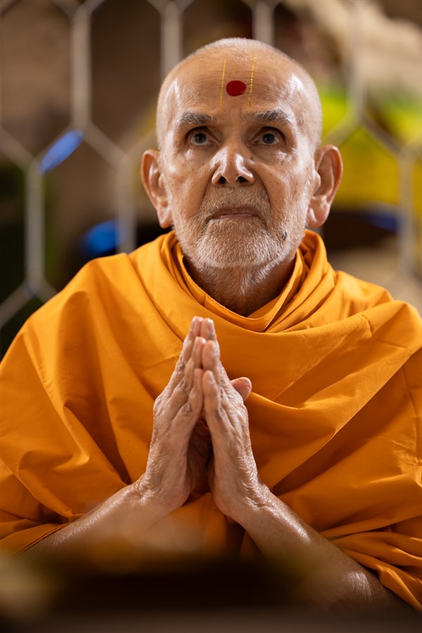 Swamishri greets all with folded hands