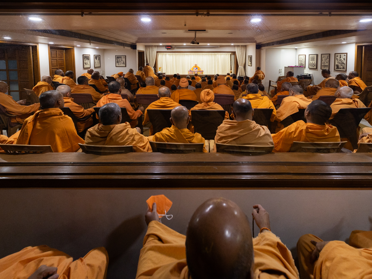 Swamishri blesses the morning assembly