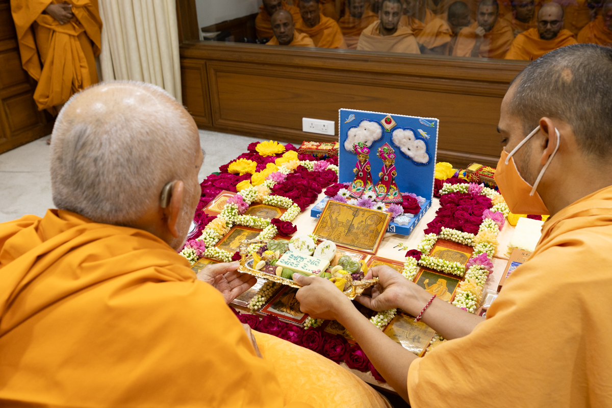 Swamishri offers thal to Thakorji