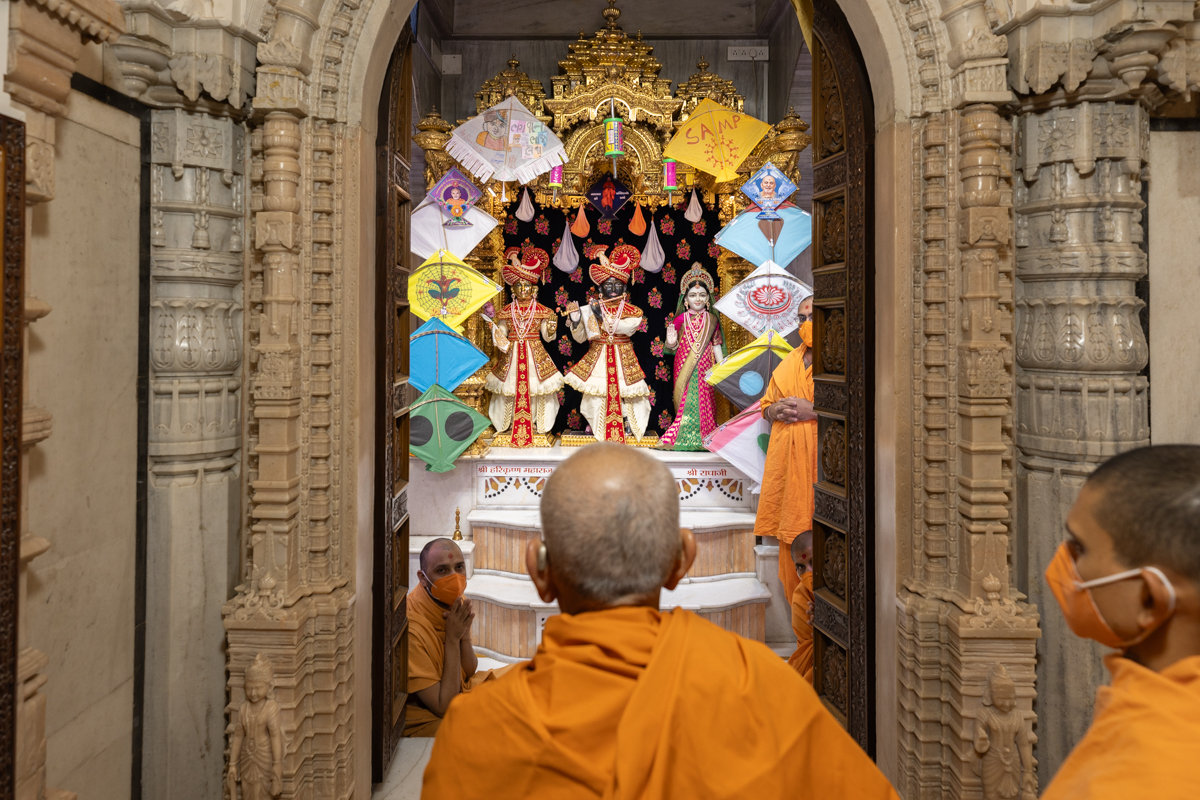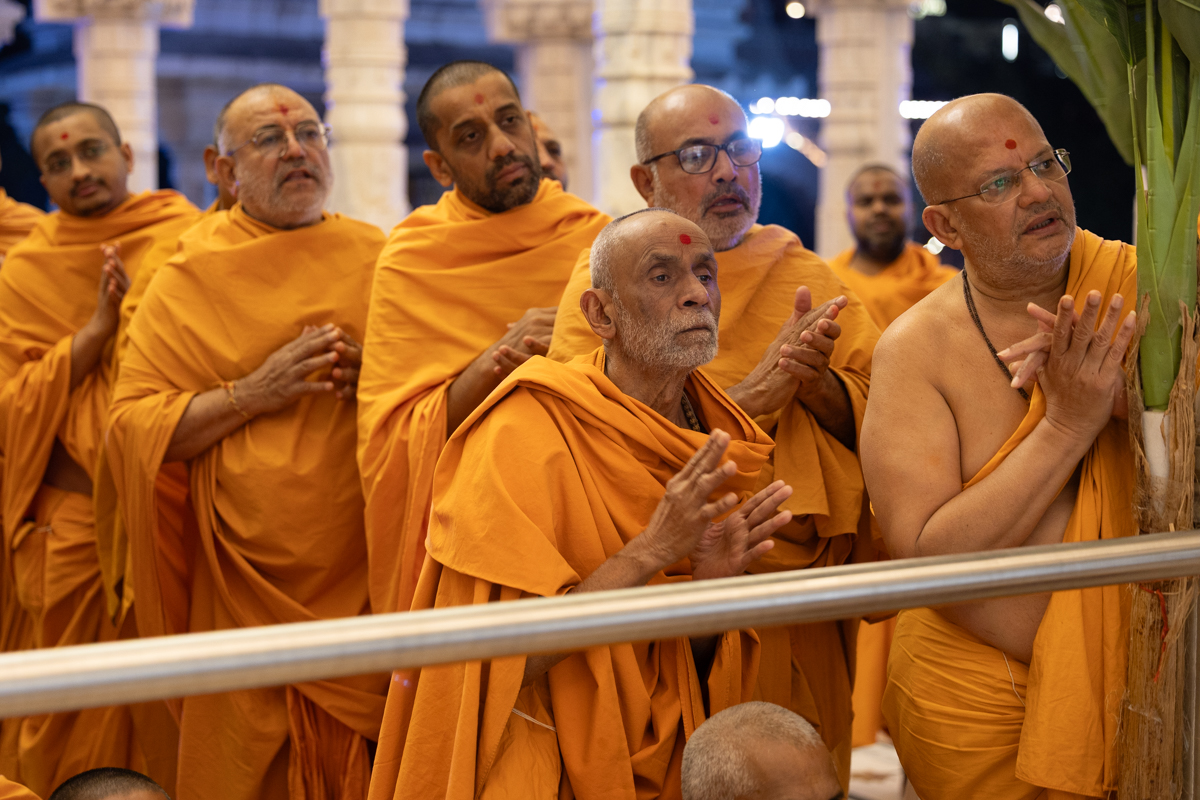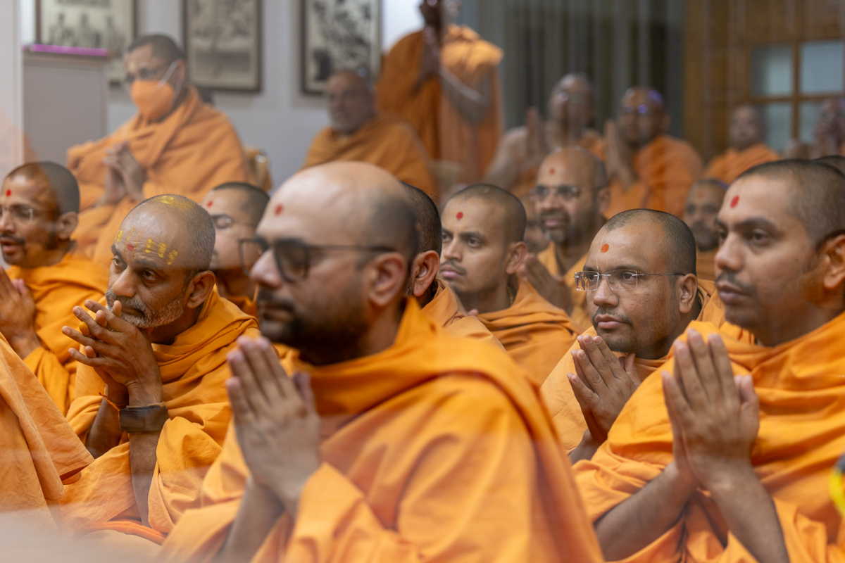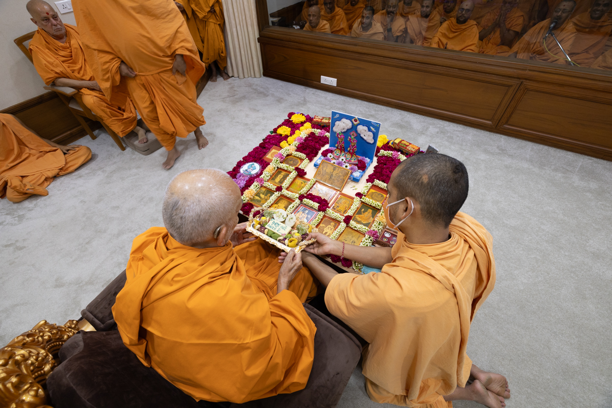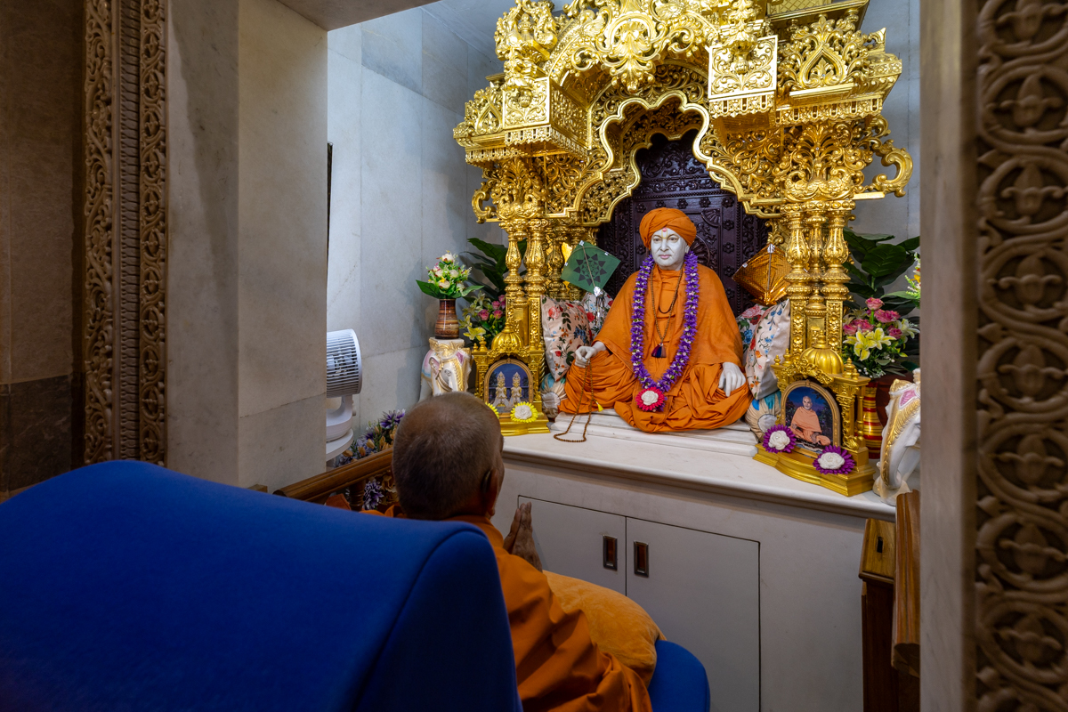 Swamis doing Swamishri's puja darshan