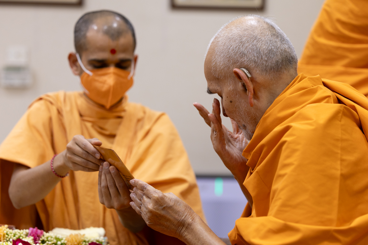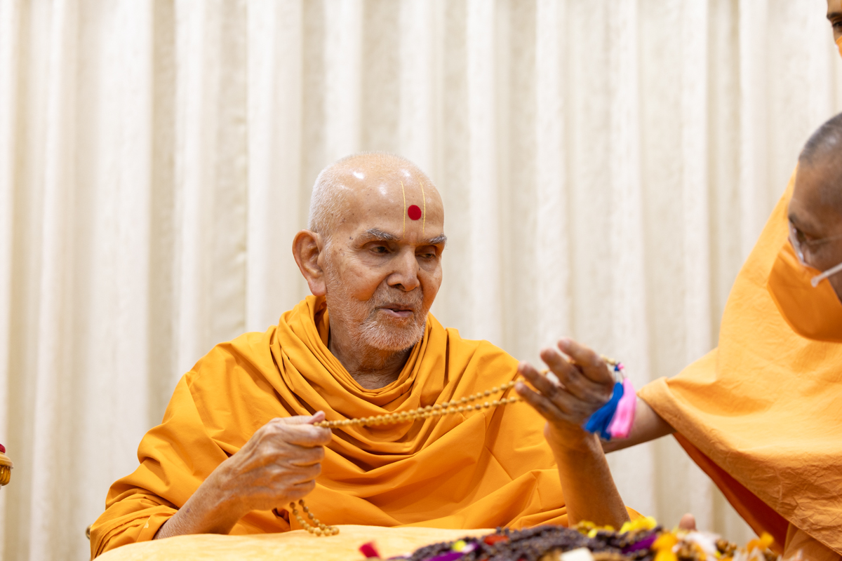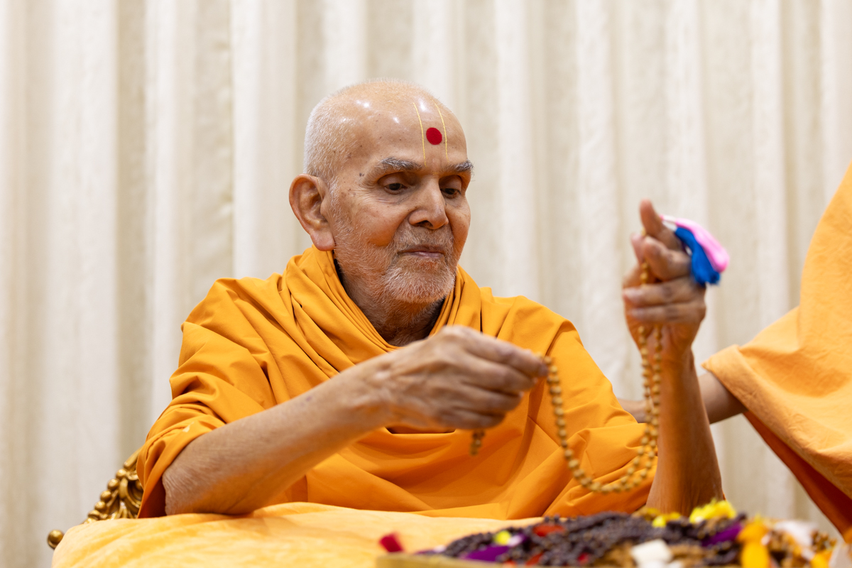 Swamishri sanctifies a mala