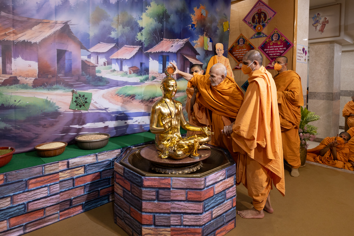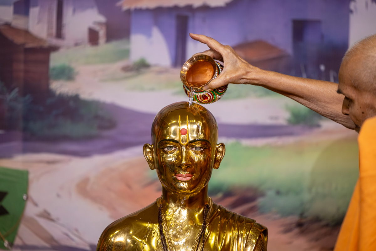 Swamishri performs abhishek of Shri Nilkanth Varni