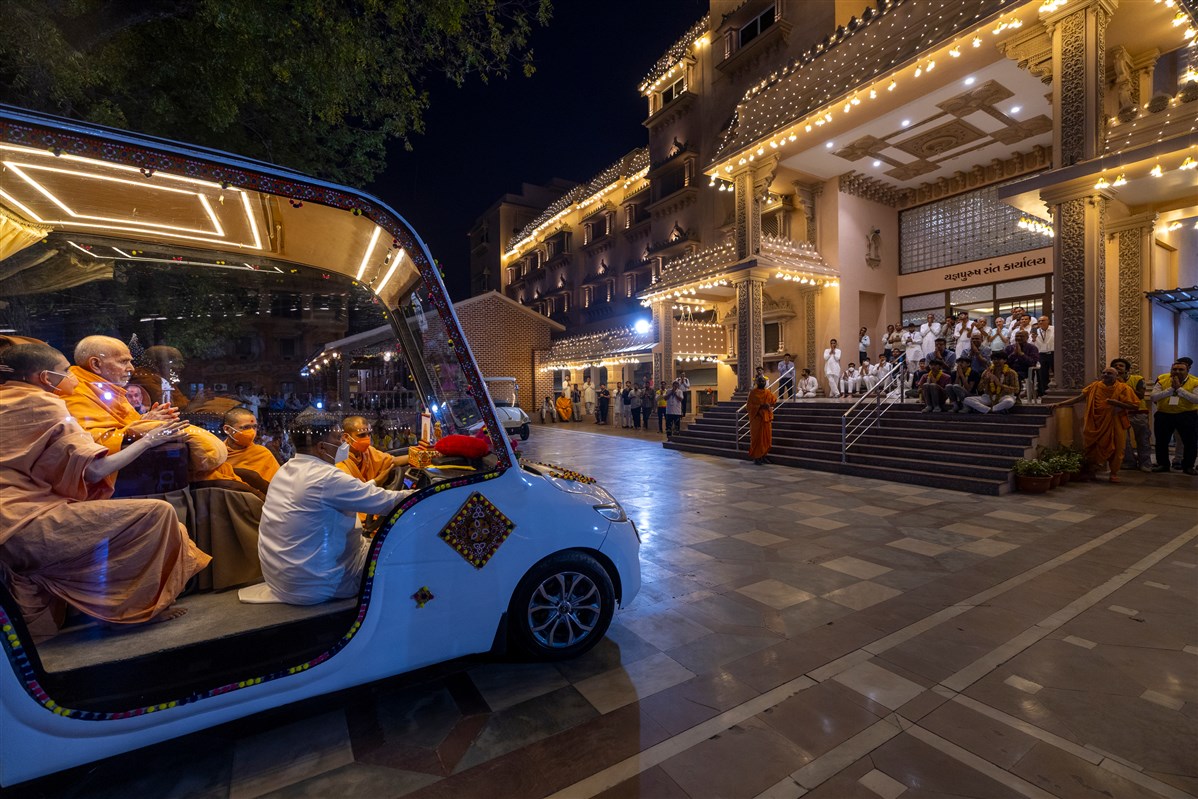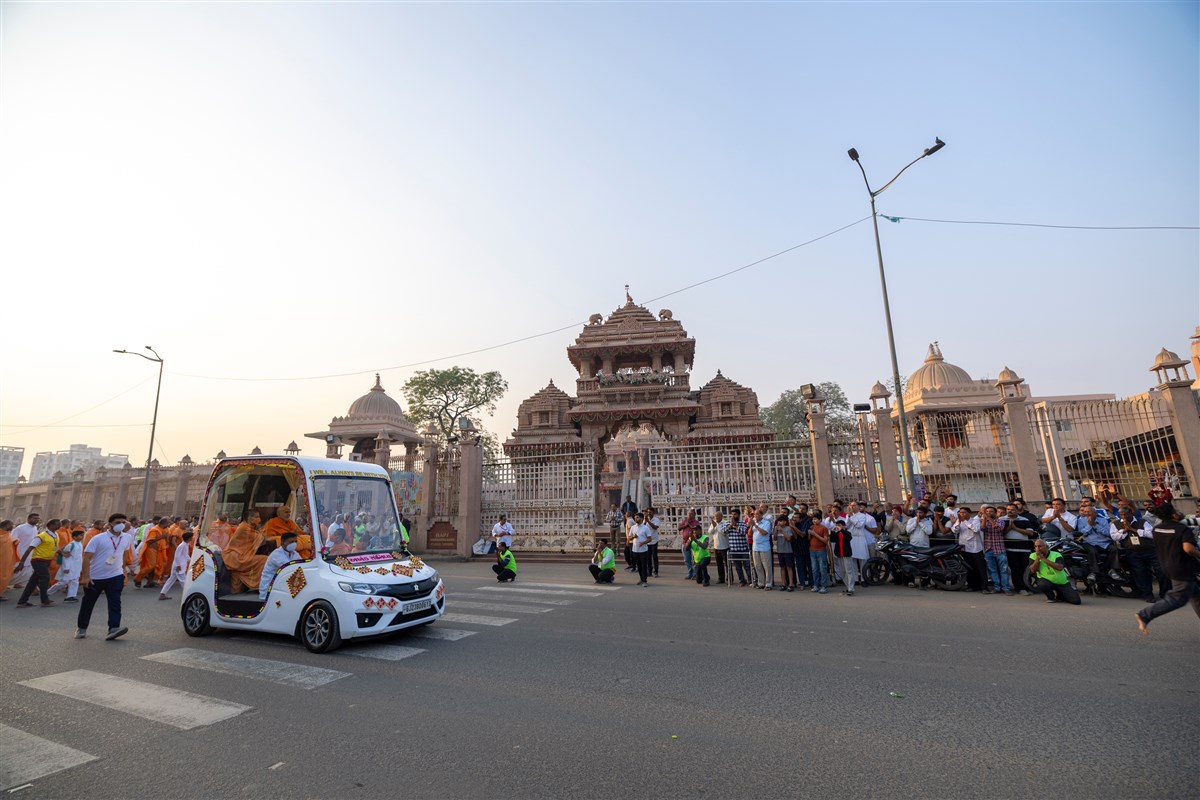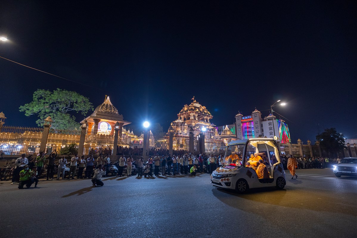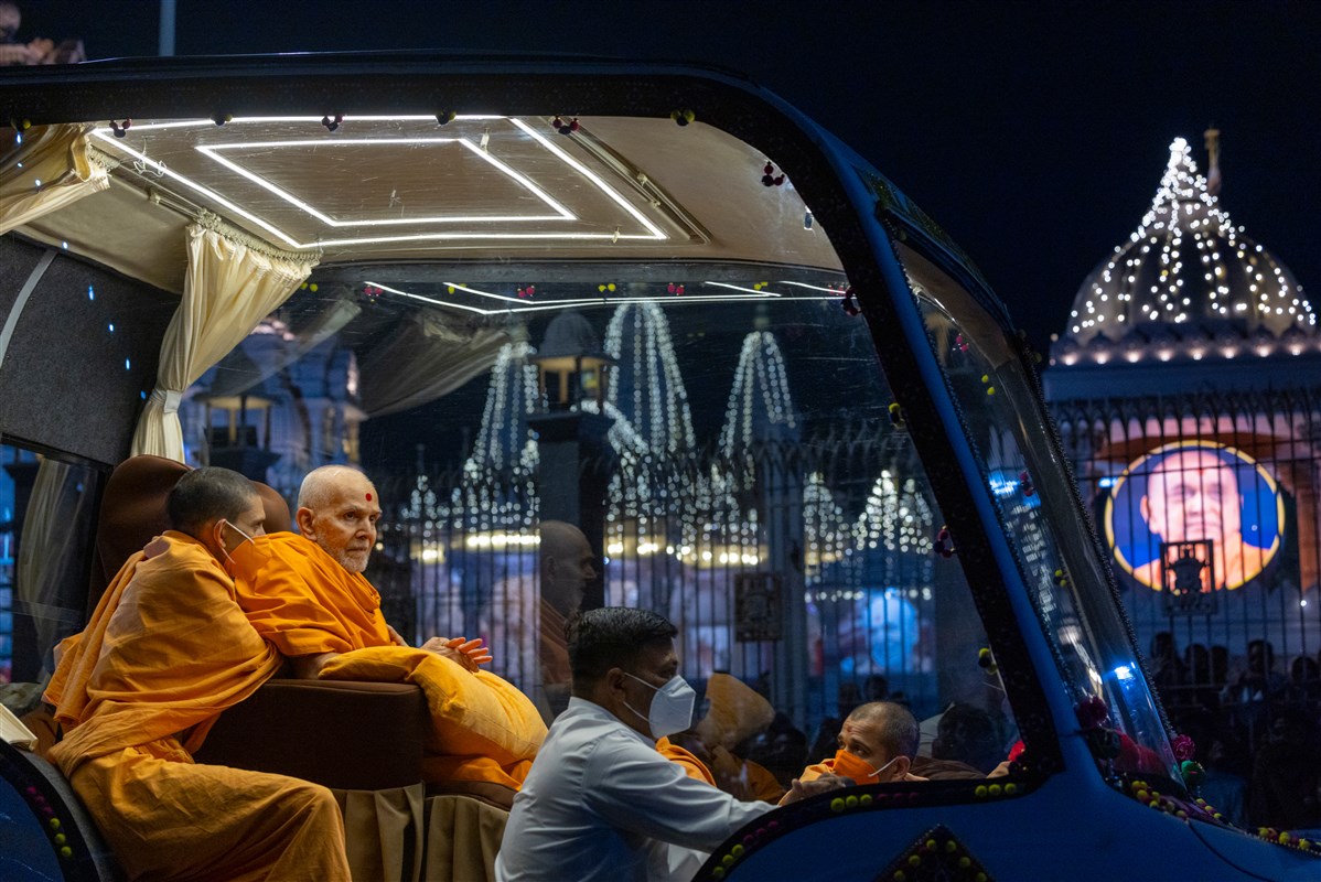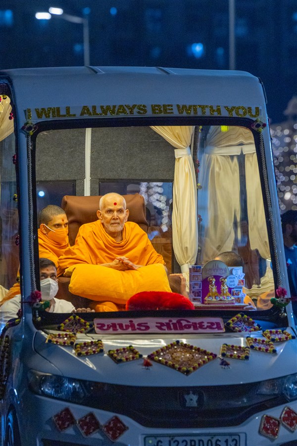 Param Pujya Mahant Swami Maharaj on his way to perform his daily puja