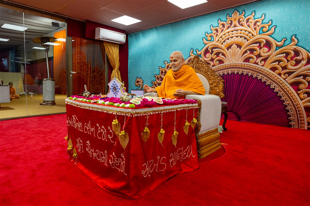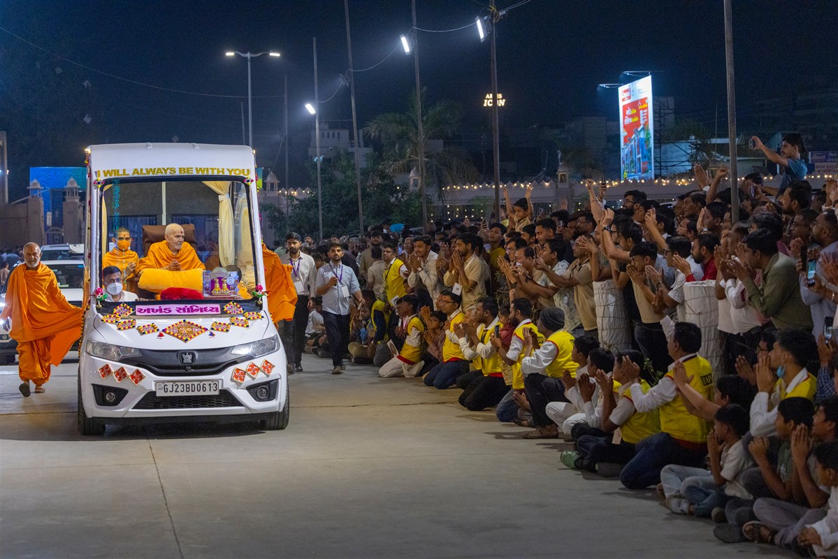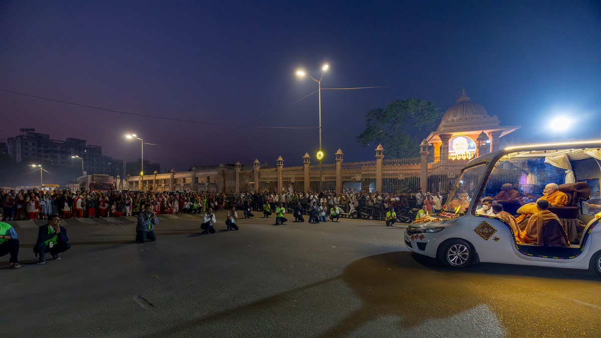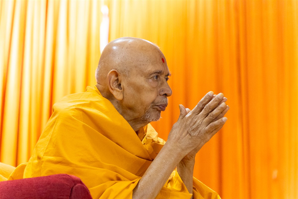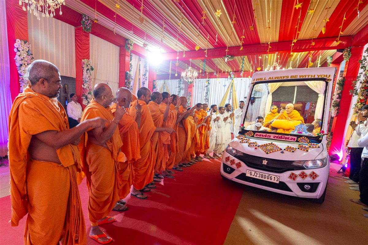 Param Pujya Mahant Swami Maharaj on his way to perform his daily puja