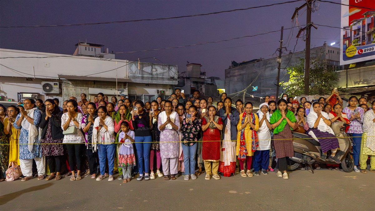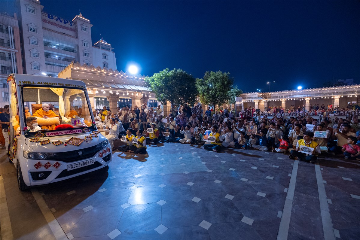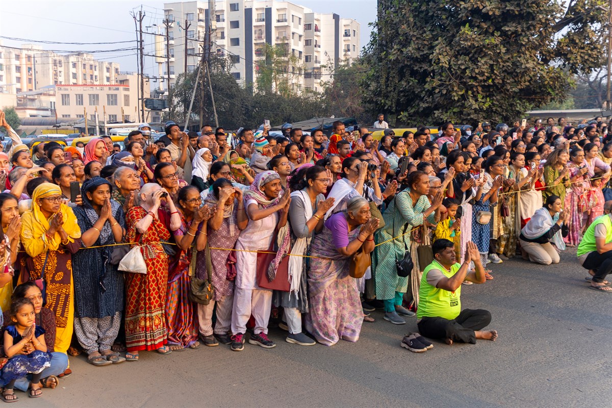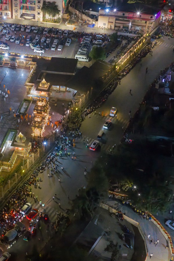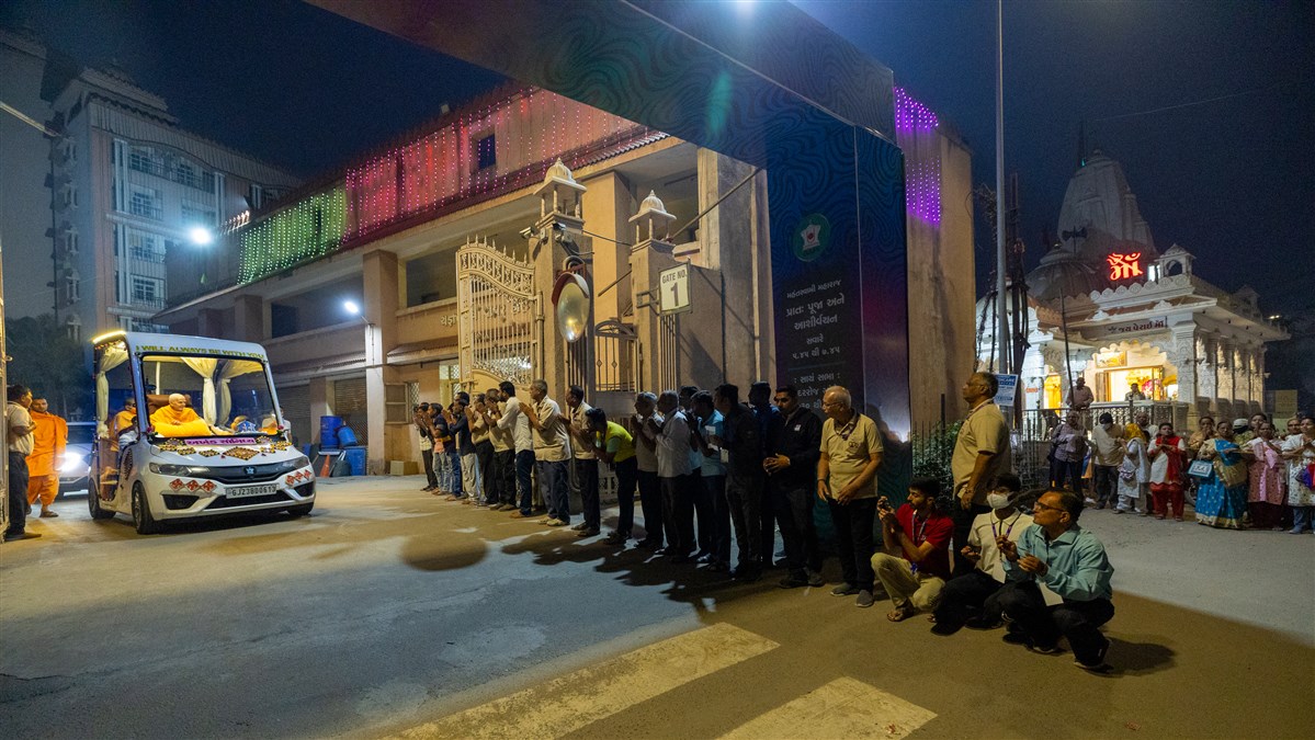 Param Pujya Mahant Swami Maharaj on his way to perform his daily puja