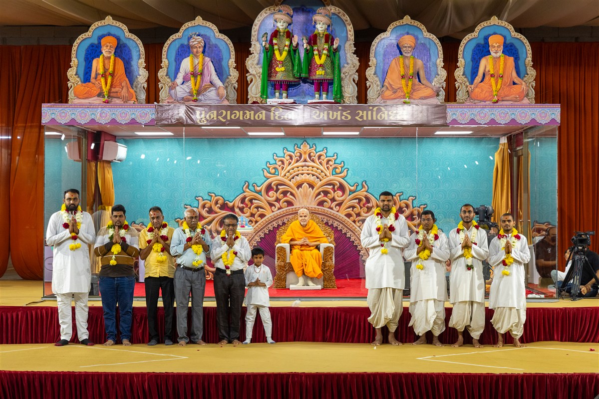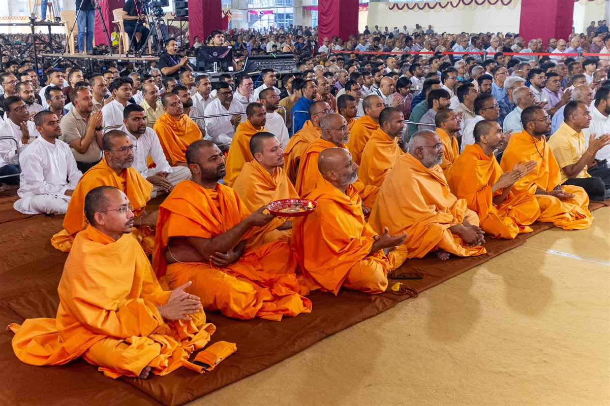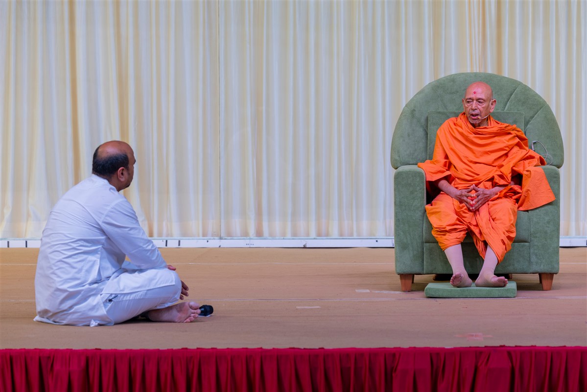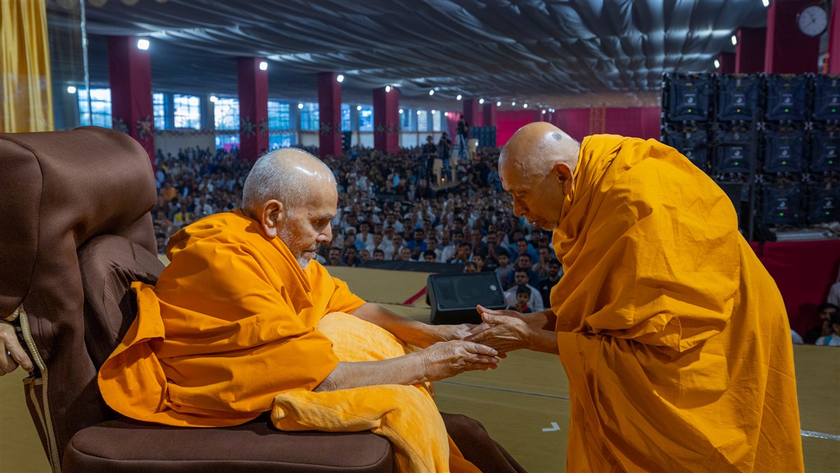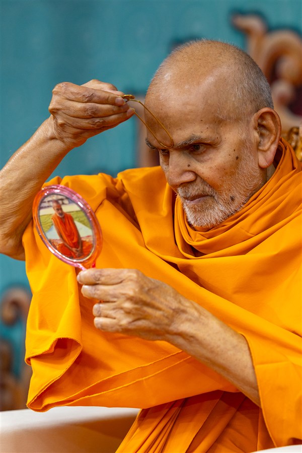 Pujya Tyagvallabh Swami doing darshan of Swamishri