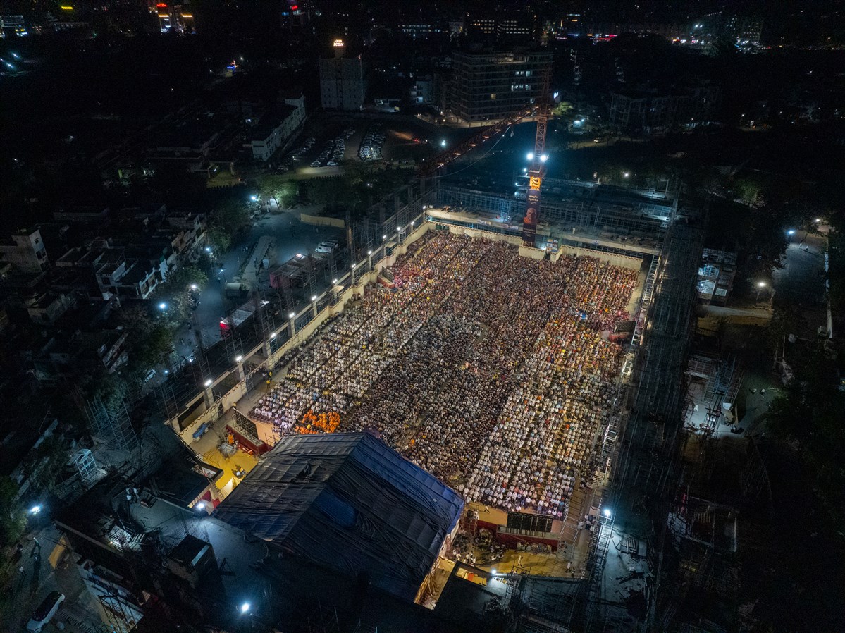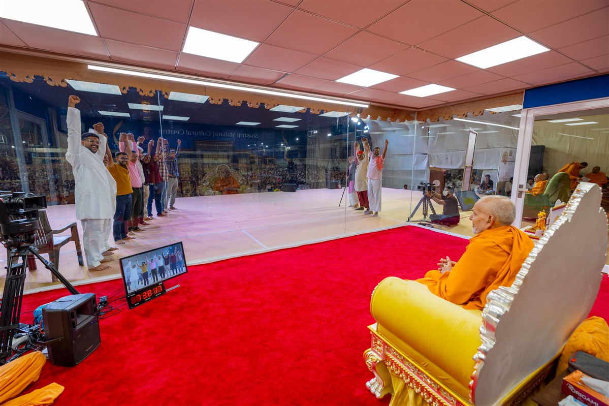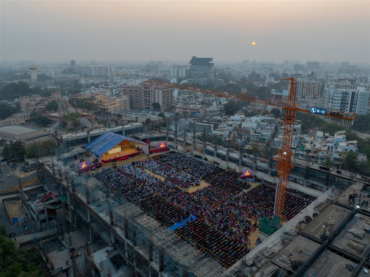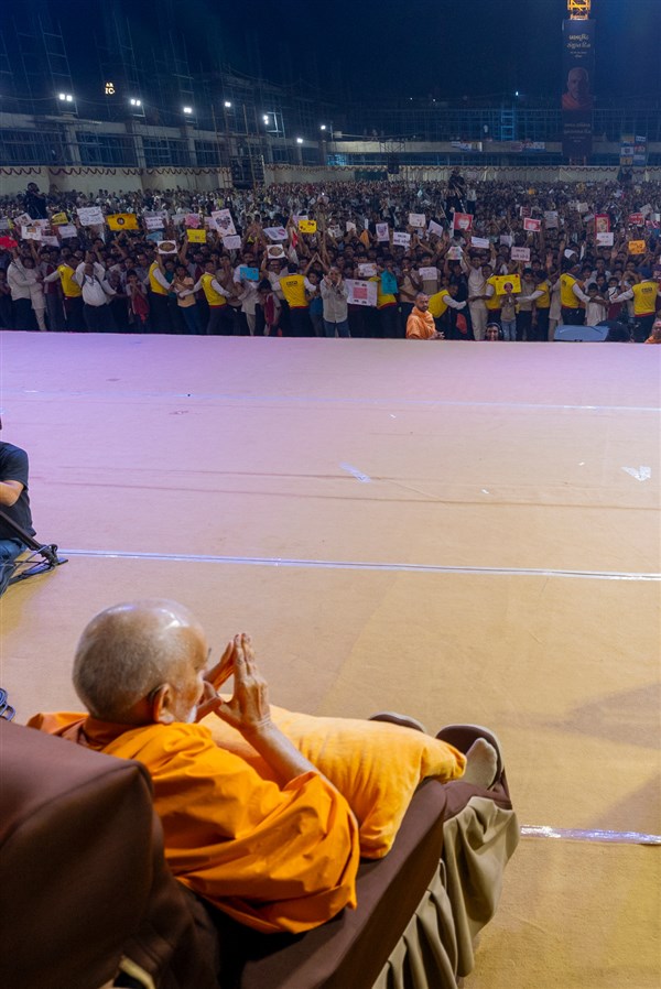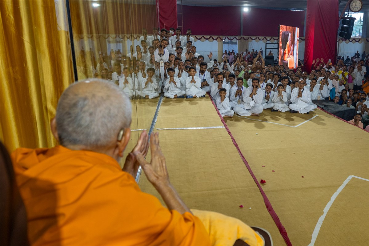 Pujya Tyagvallabh Swami doing darshan of Swamishri