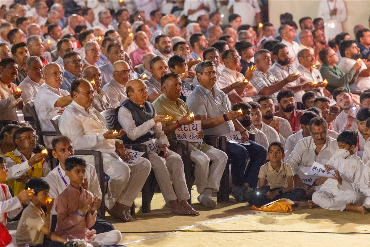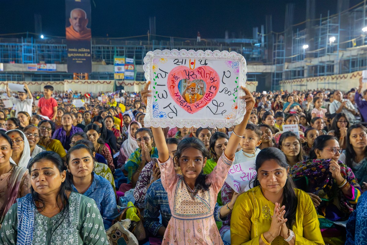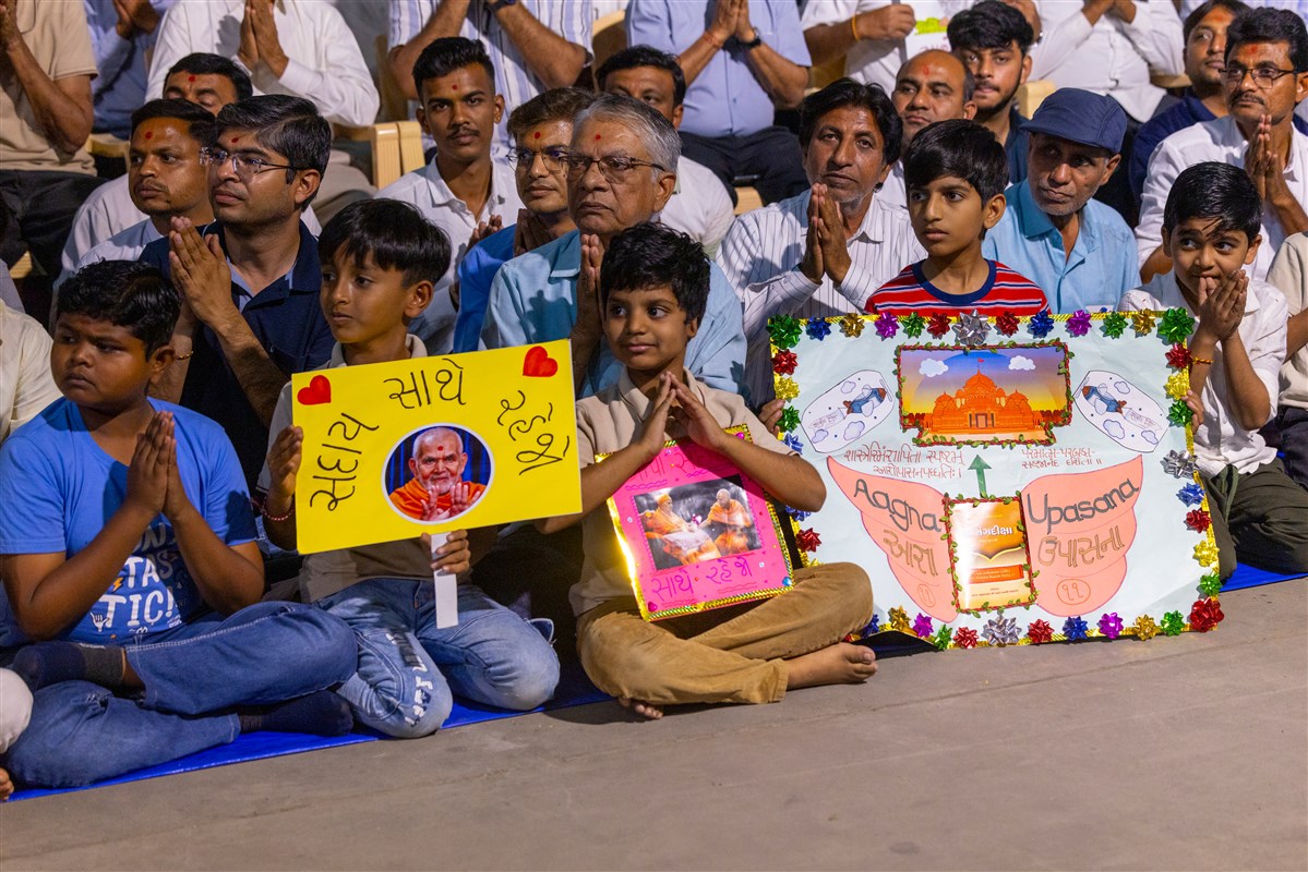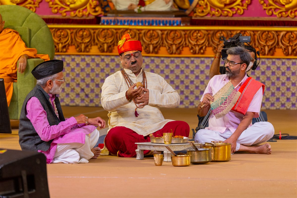 Balaks lead everyone in reciting the sadhana mantra and daily prayer in Swamishri's puja