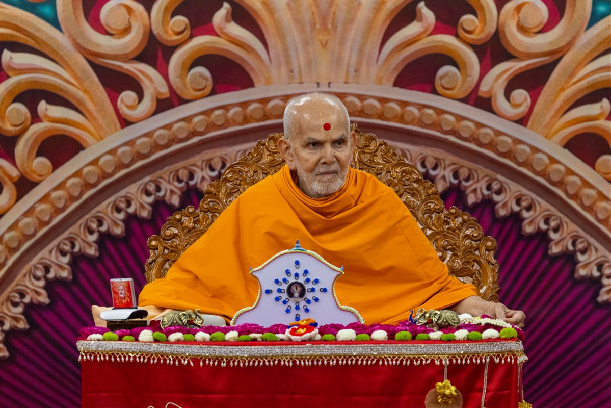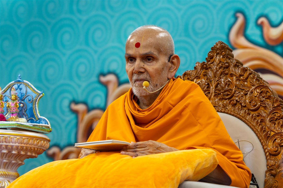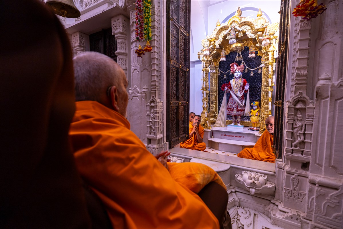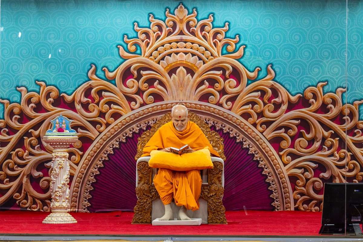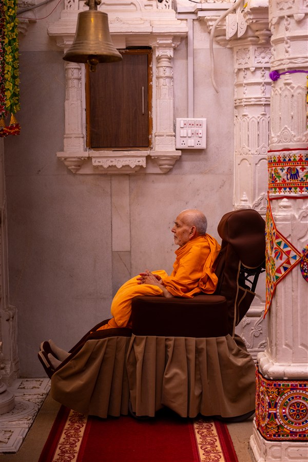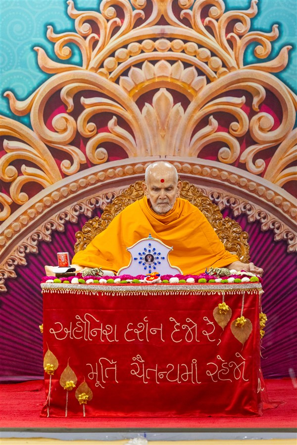 Swamishri engrossed in darshan of Shri Ghanshyam Maharaj