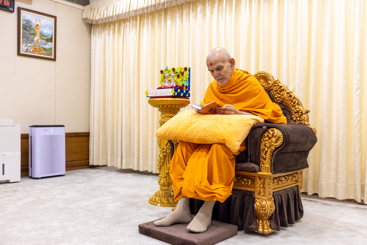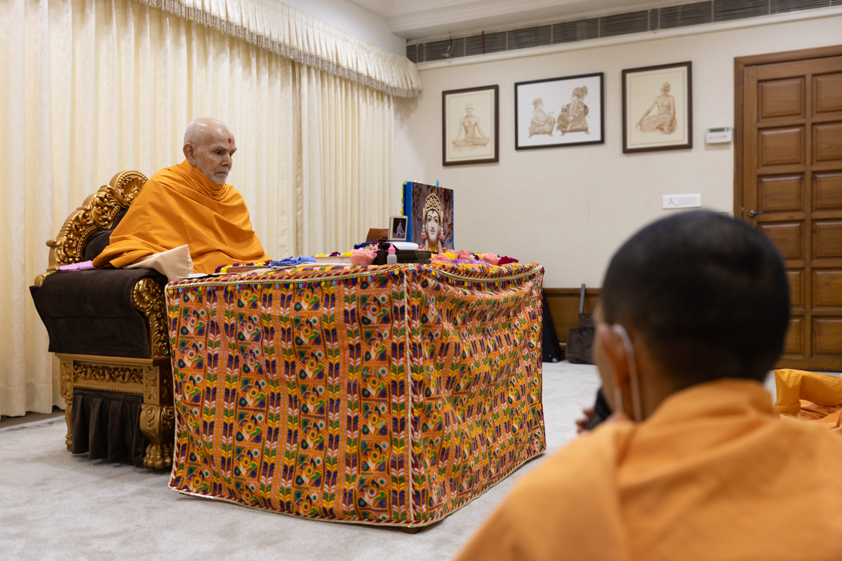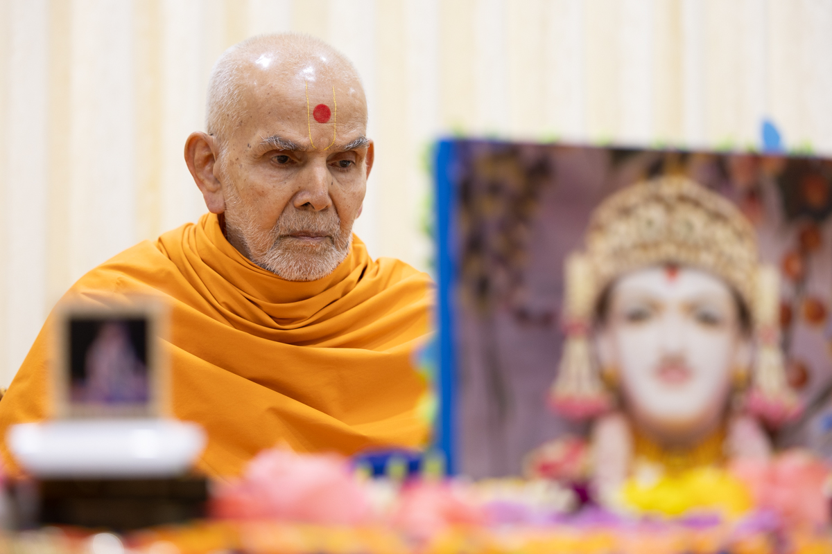 Param Pujya Mahant Swami Maharaj performs his daily puja
