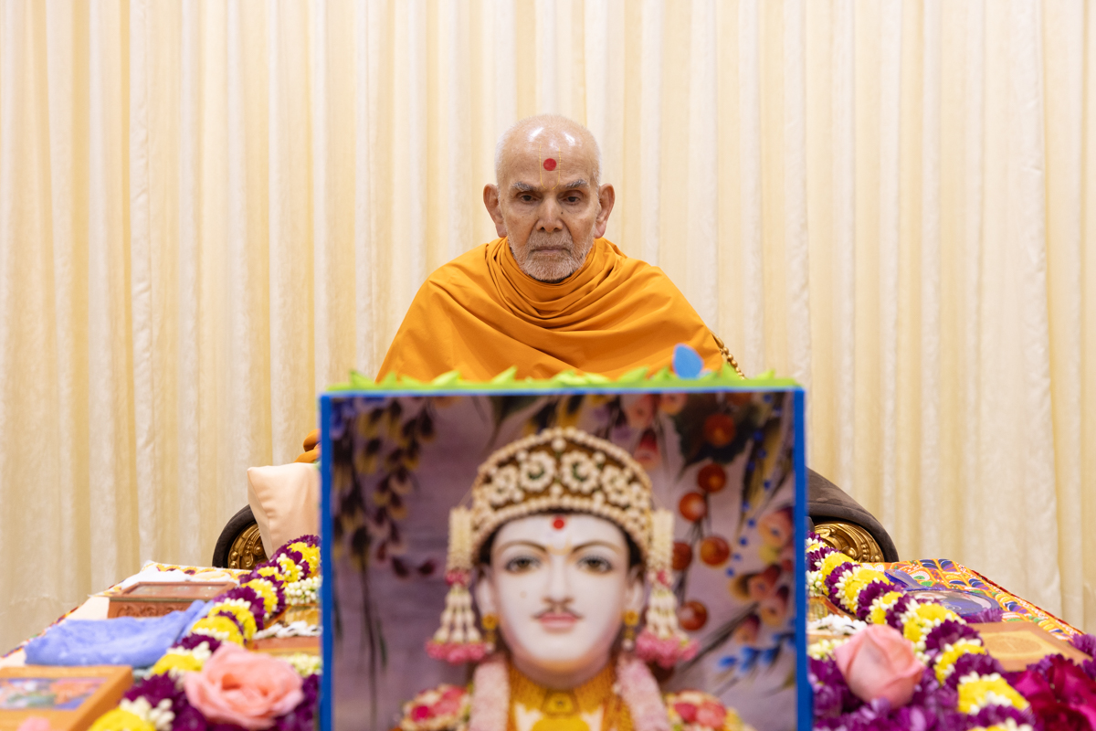 Swamishri engrossed in darshan of Shri Ghanshyam Maharaj