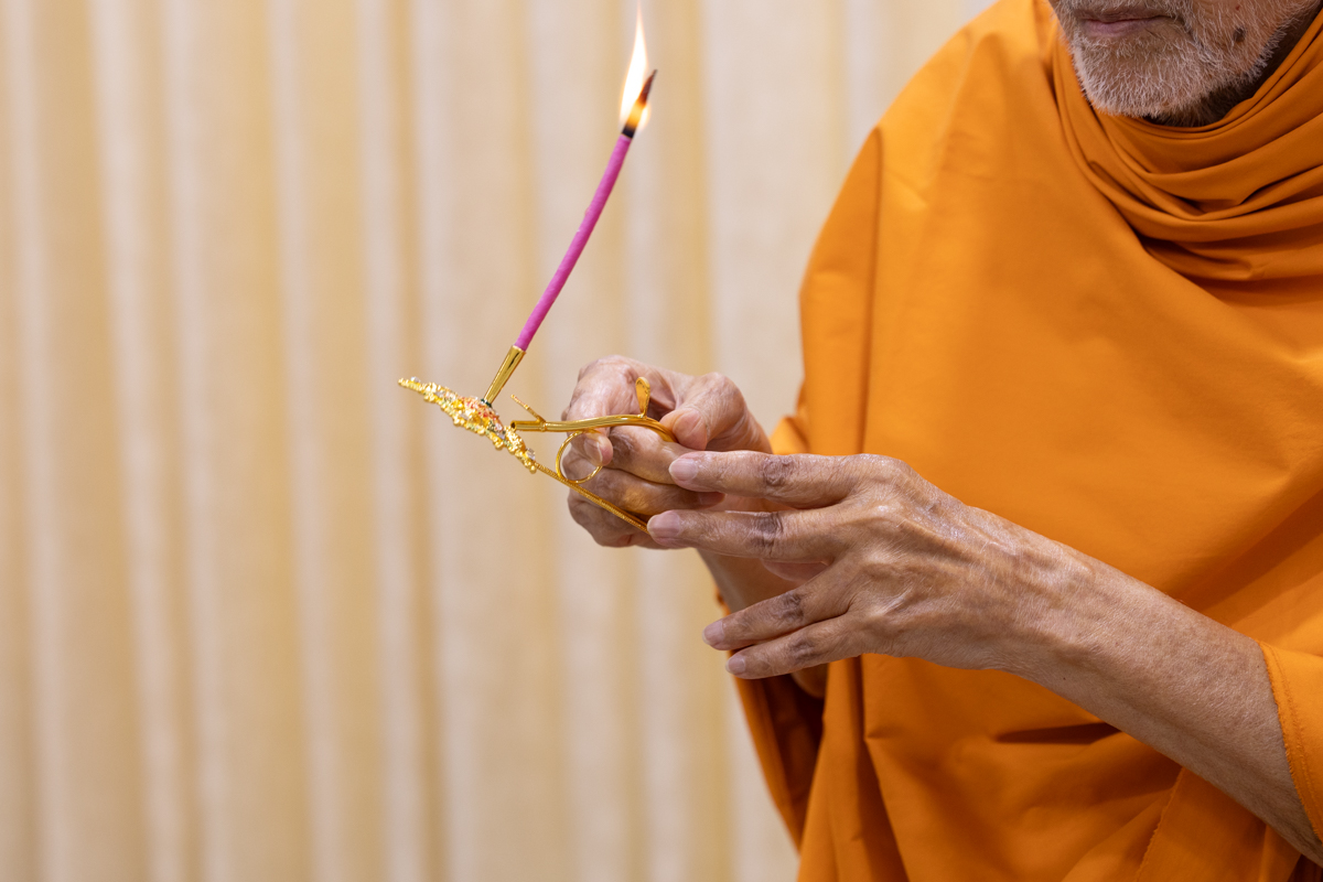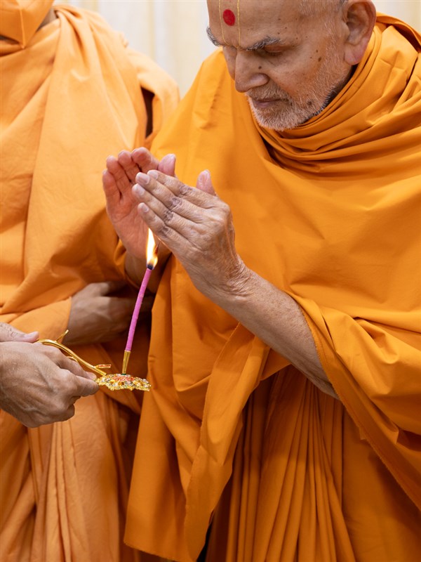 Swamishri performs the morning arti