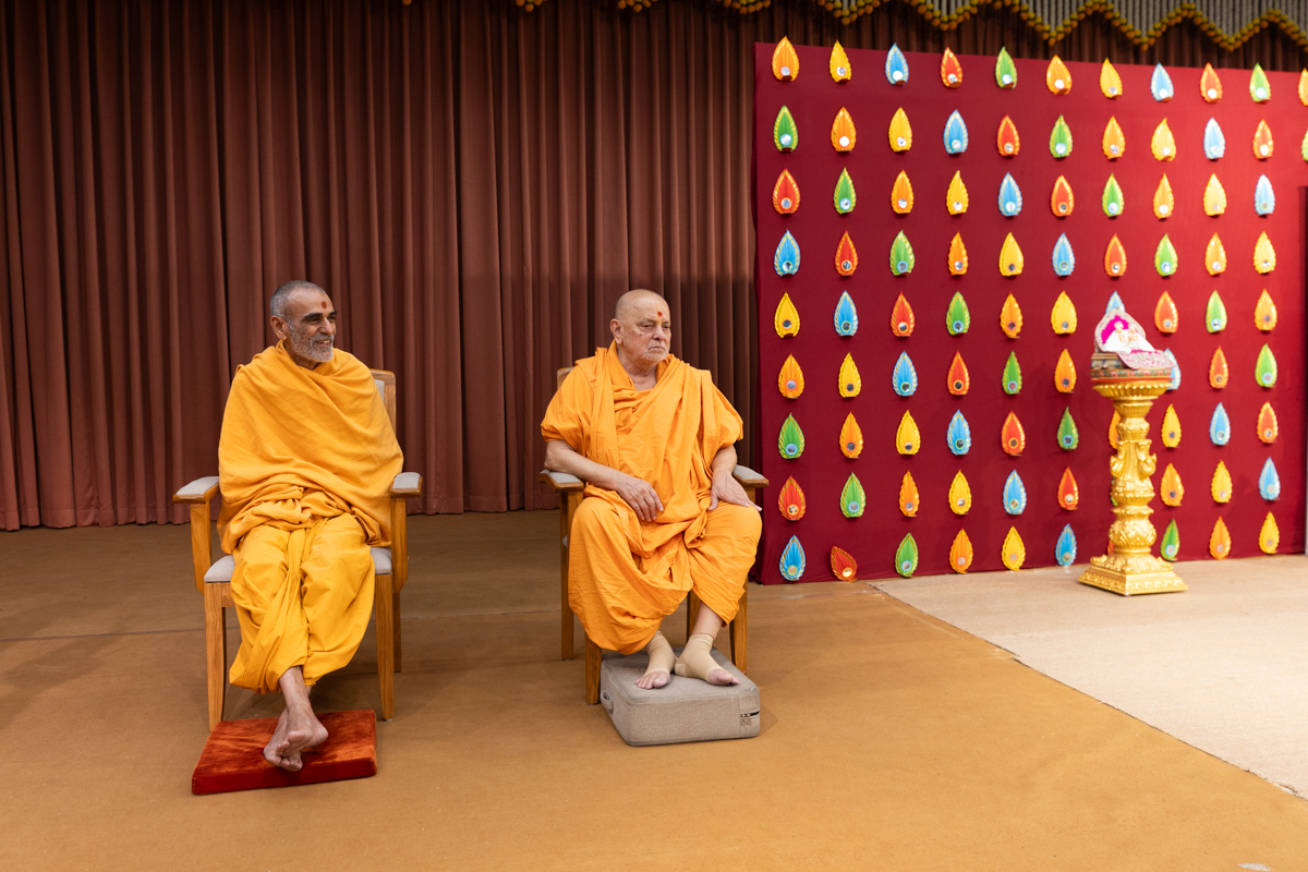 Swamis doing darshan of Swamishri