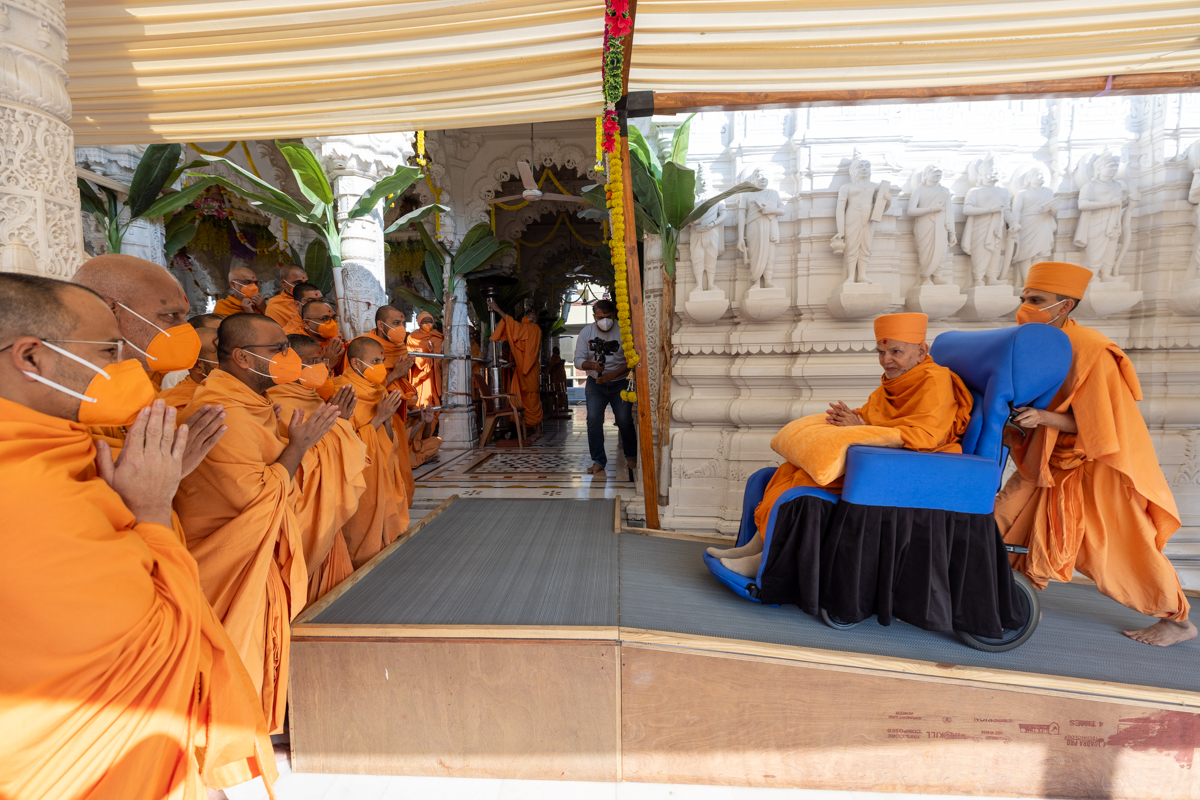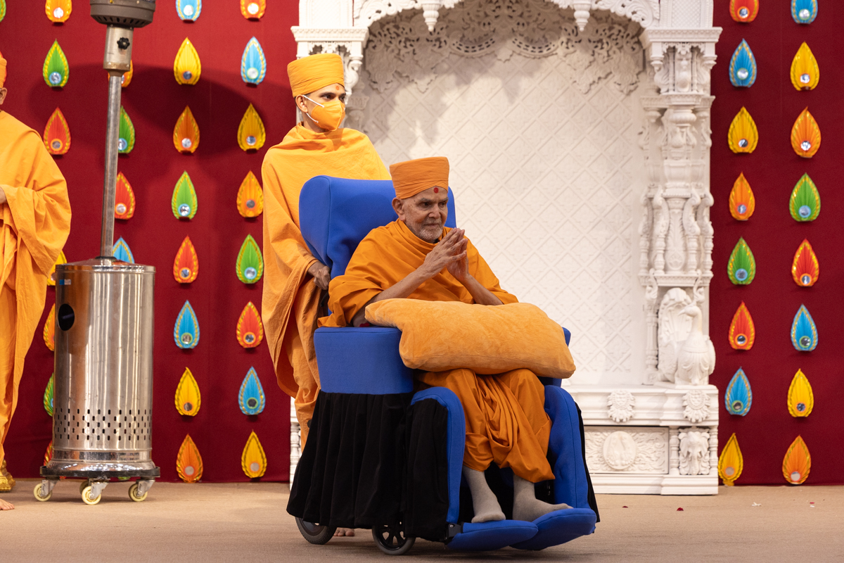 Swamishri greets all with folded hands