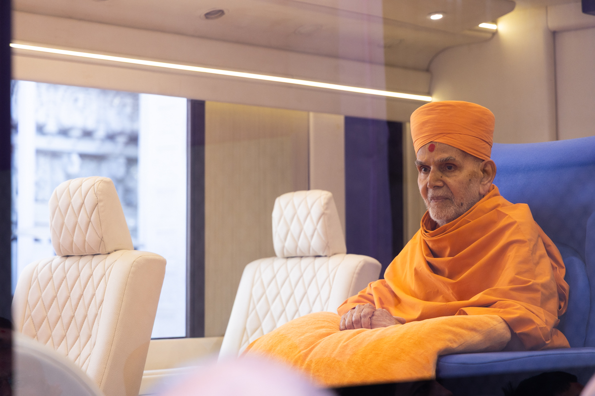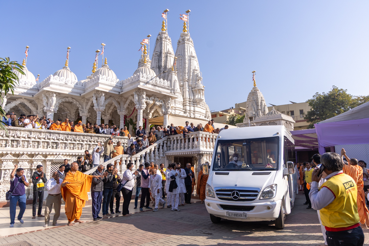 Swamishri departs from Ahmedabad