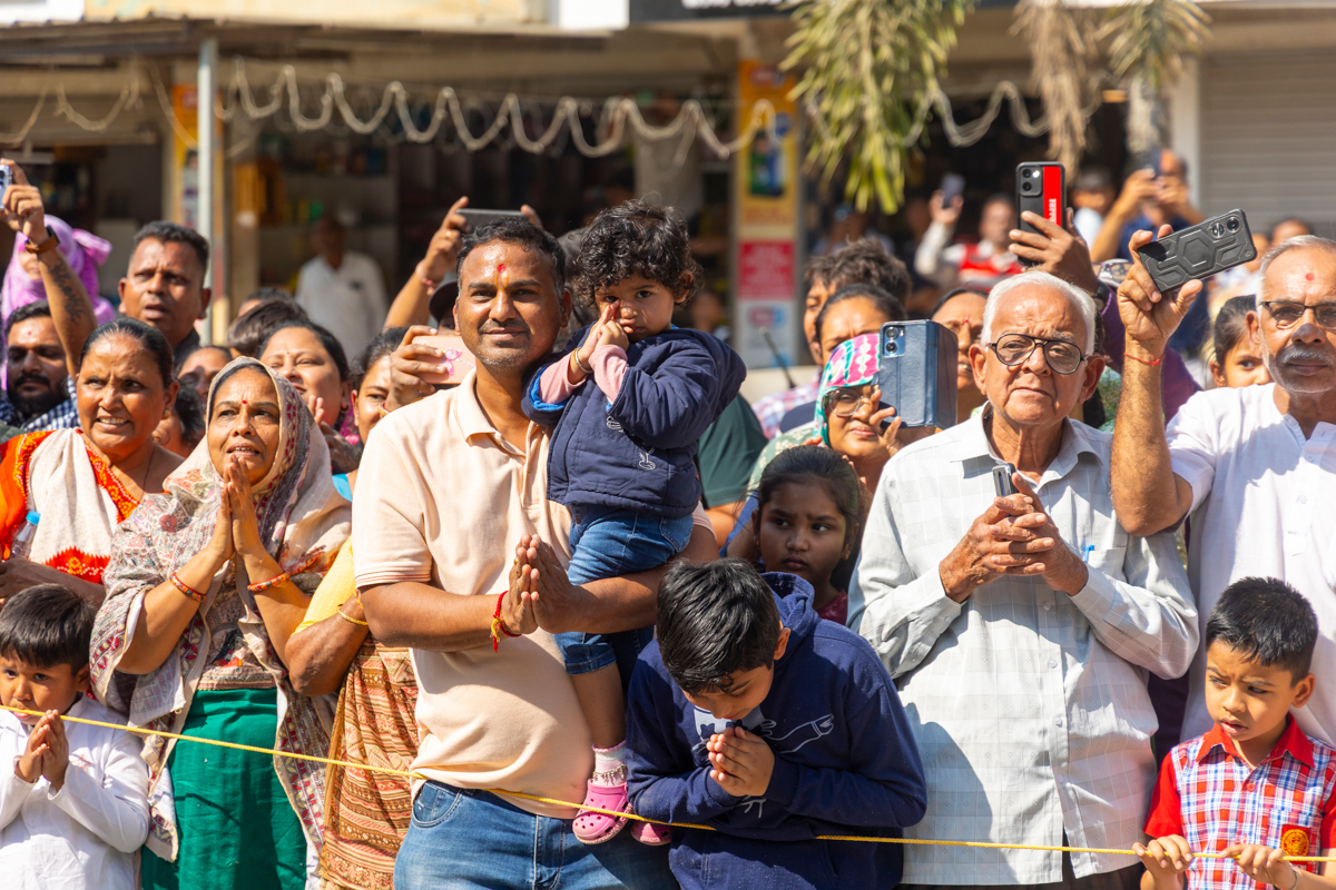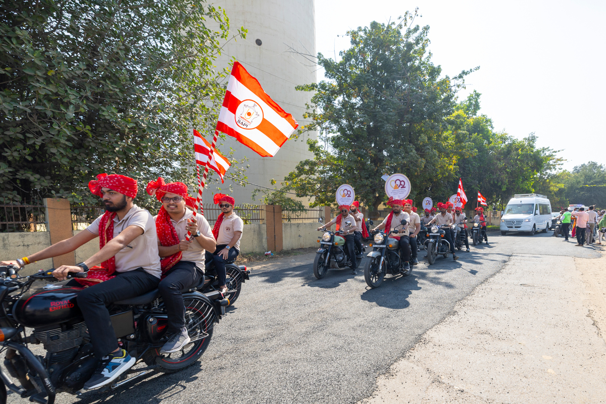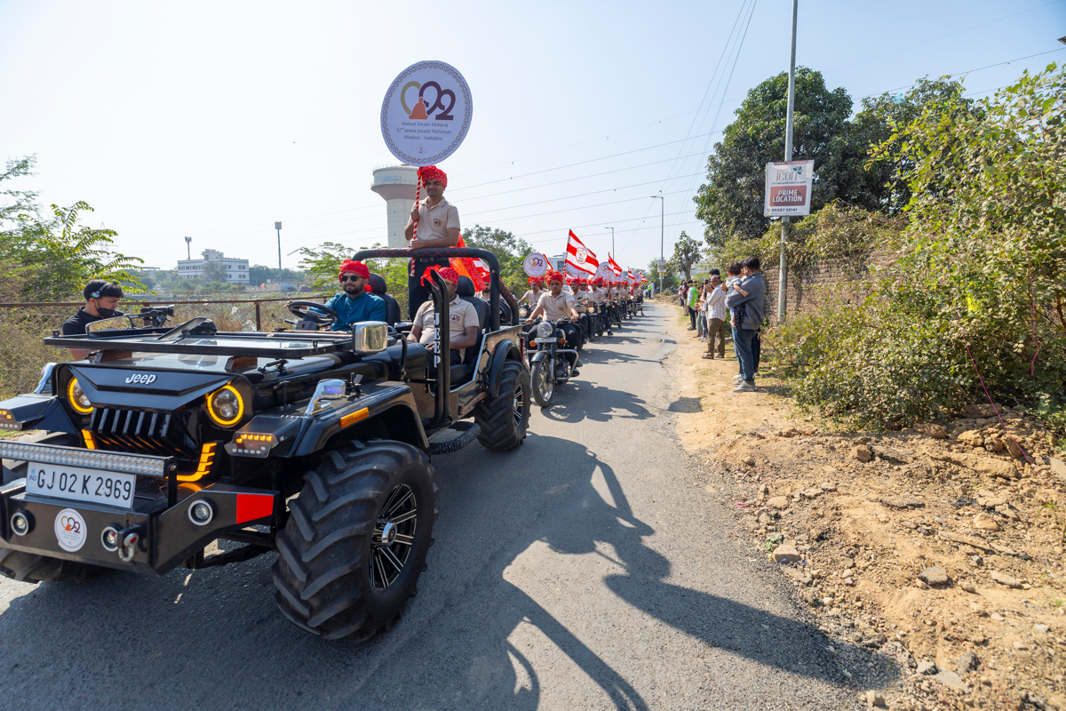Youths lead Swamishri on the streets of Atladara