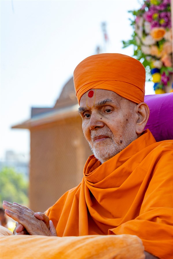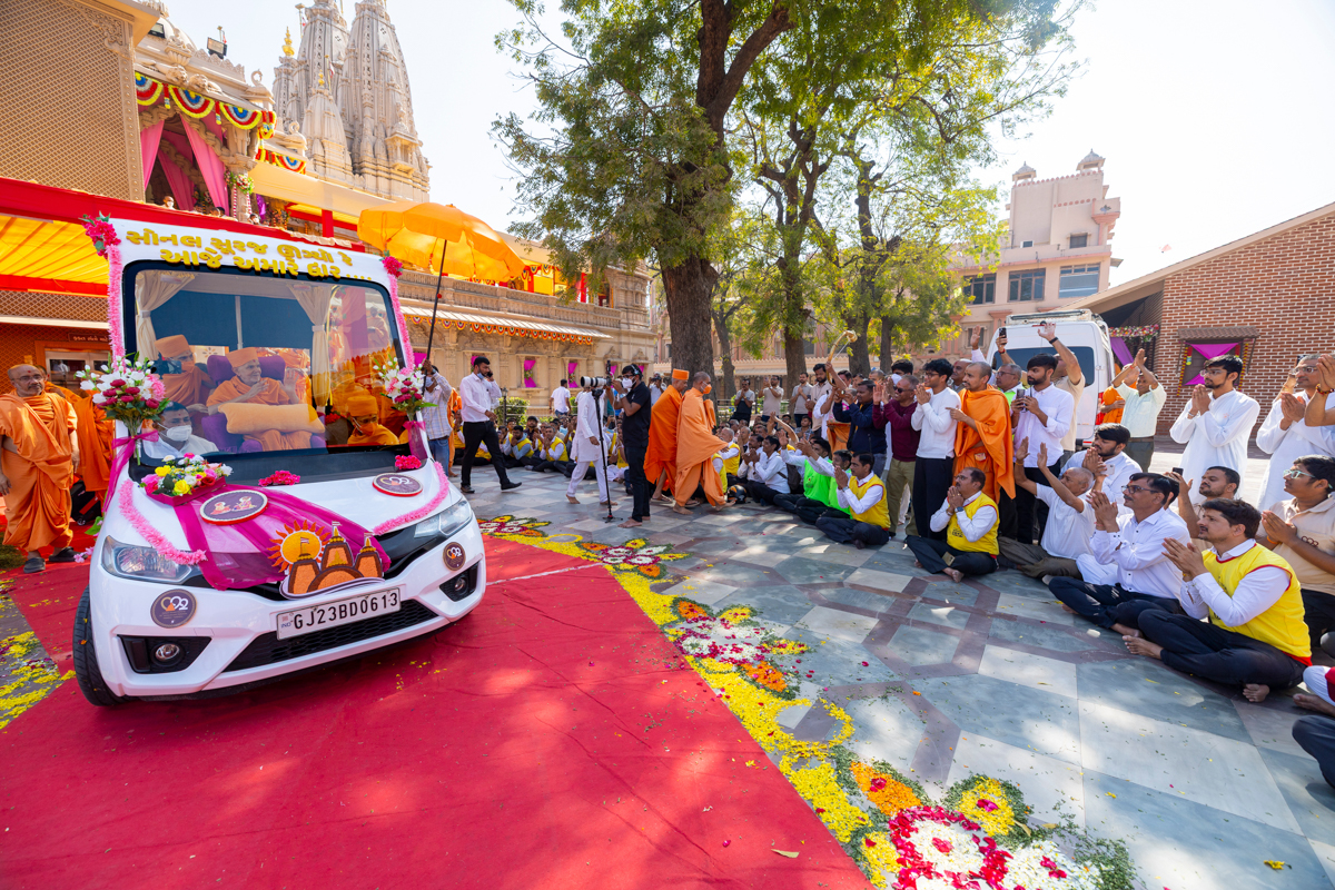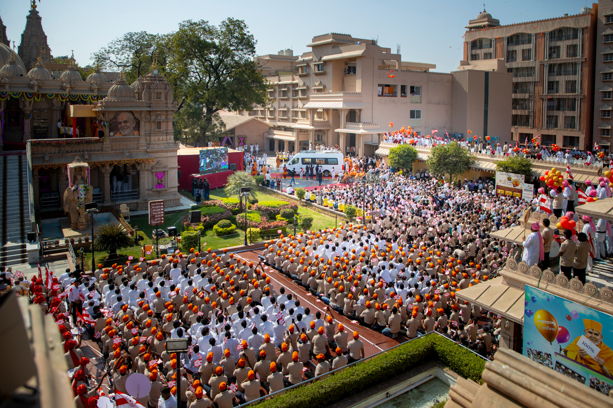 Param Pujya Mahant Swami Maharaj arrives in Atladara